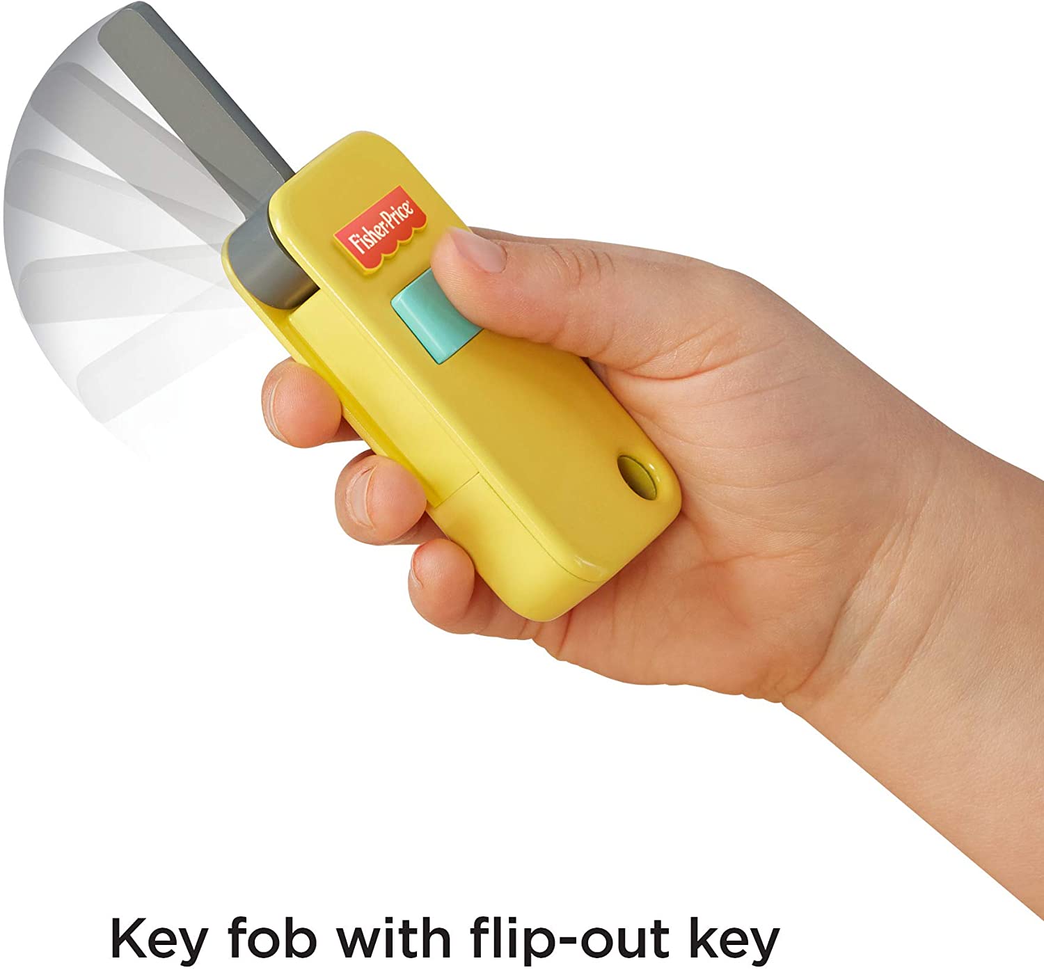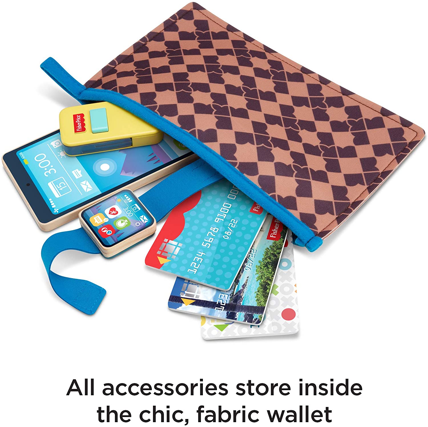 Wallet? Check. Phone? Check. Keys? Uuuuh… Check! With the Fisher-Price On-The-Go Wallet, your savvy preschooler has everything they need to run all their important errands—just like you! The pretend phone and watch face are made with smooth wood decorated to look just like the real thing, and the key fob flips open at the press of the button. Best of all, the play pieces fit inside the chic fabric wallet, so your kiddo is always ready to go on an exciting role play adventure!