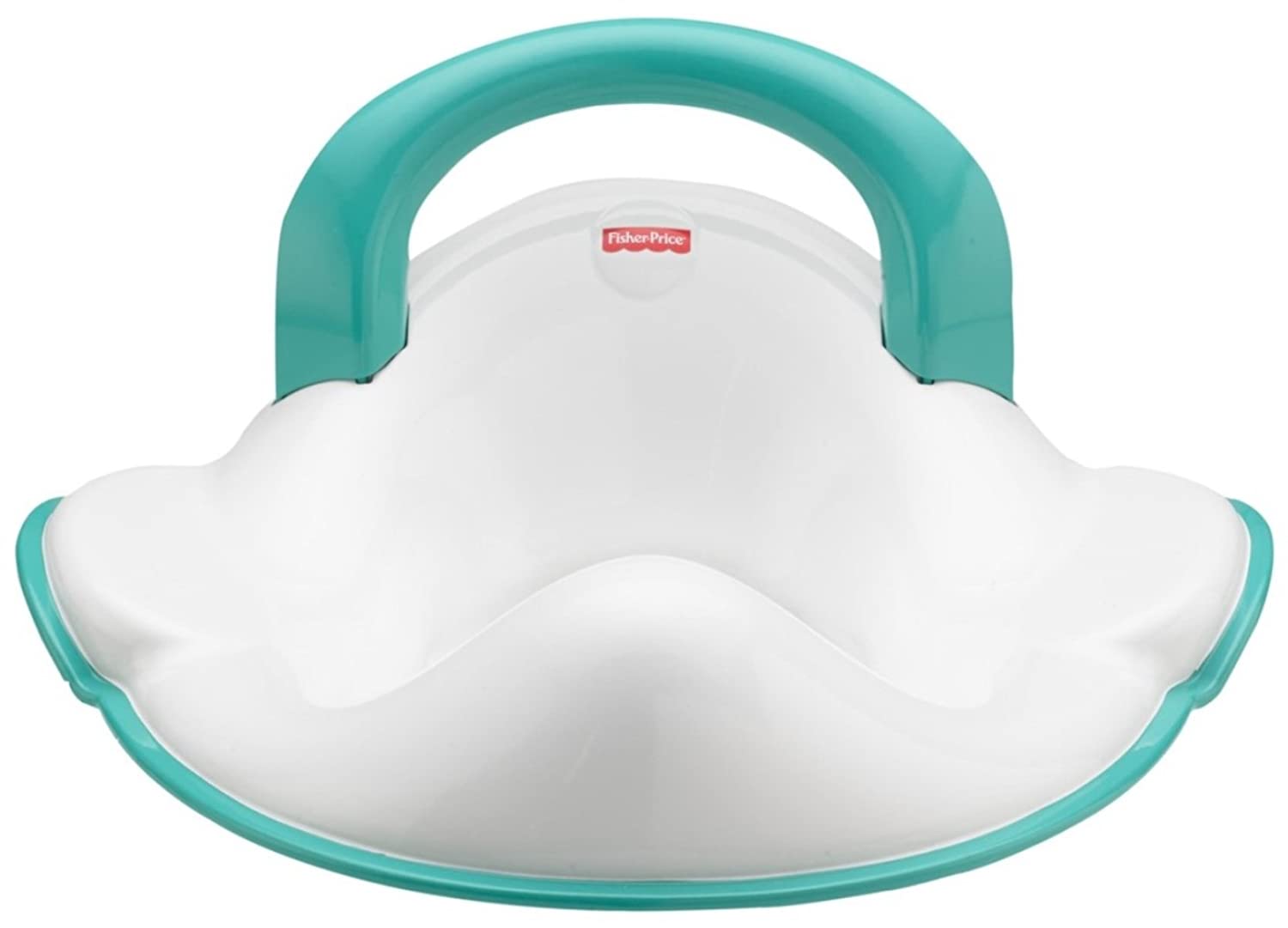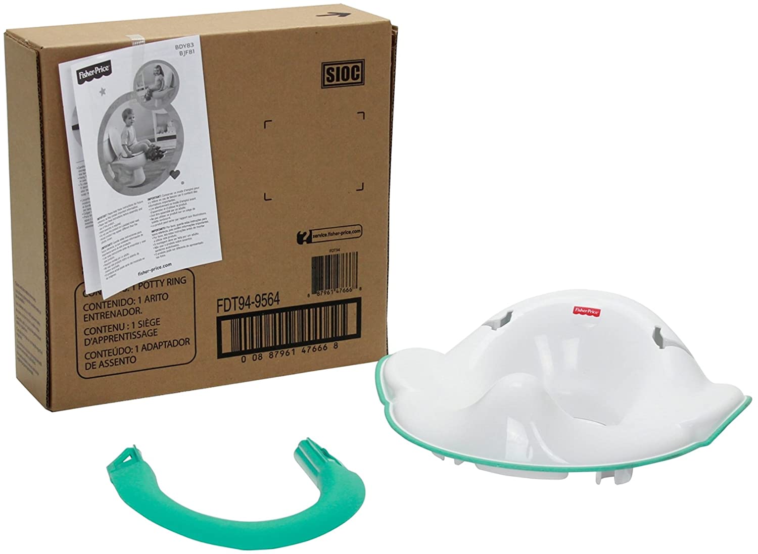 A unique "perfect fit" handle allows this potty ring to quickly and easily adjust to custom fit most toilet seats. Handles on the potty ring help toddlers feel comfortable and secure on the big toilet. An integrated splash guard and easy-to-clean design makes the potty training process easier for parents, too!