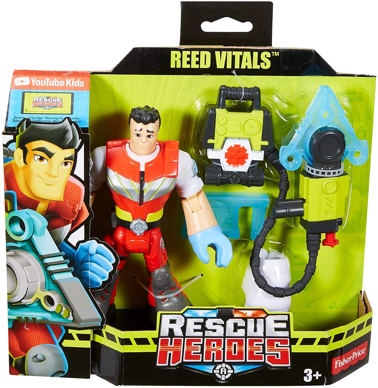 Reed Vitals is a new cadet on the Rescue Heroes team, bringing his expertise in medical rescue and emergency response, all the way from South Korea! When disaster strikes, this brave hero is first on the scene to help the injured, moving rubble with his power grabber, checking survivors' vital signs with his monitor, and patching up injuries with the arm cast. Reed Vitals is ready for all your little hero's exciting rescue missions!