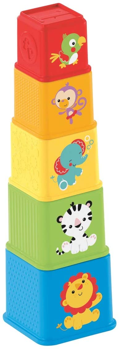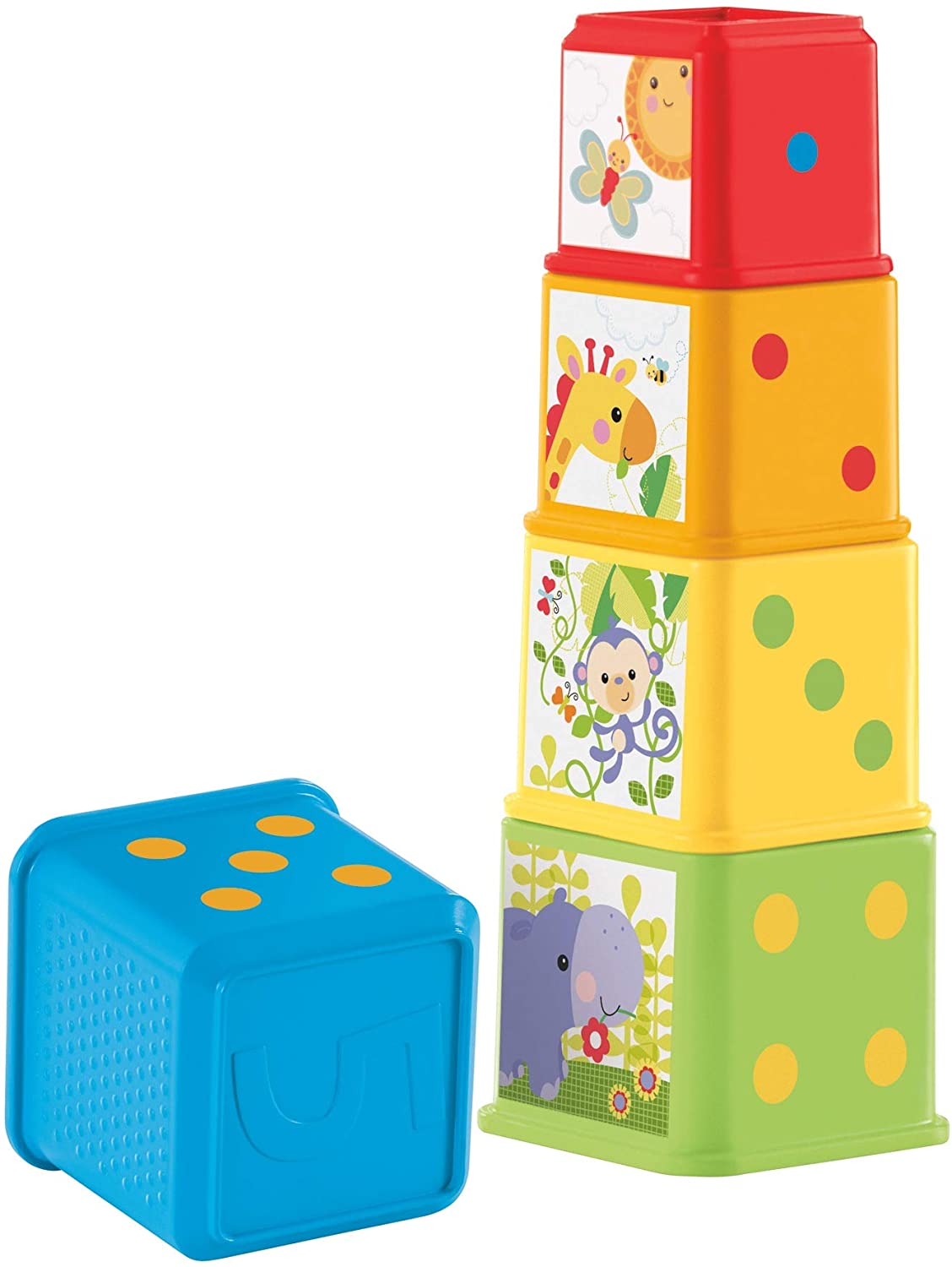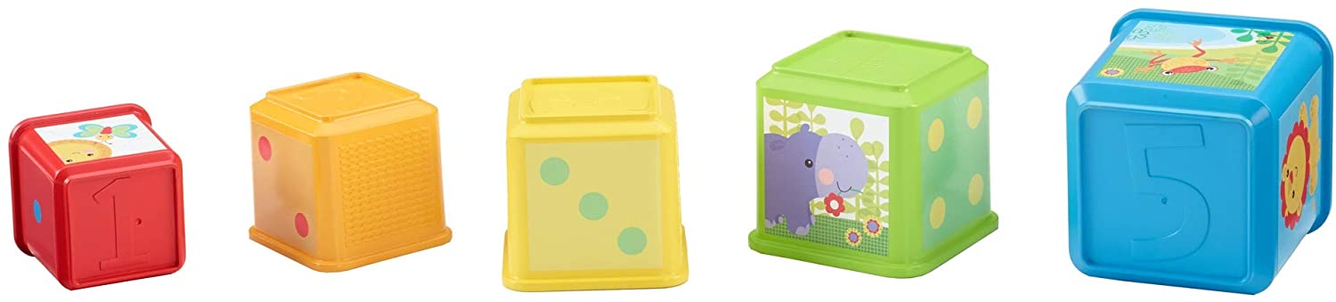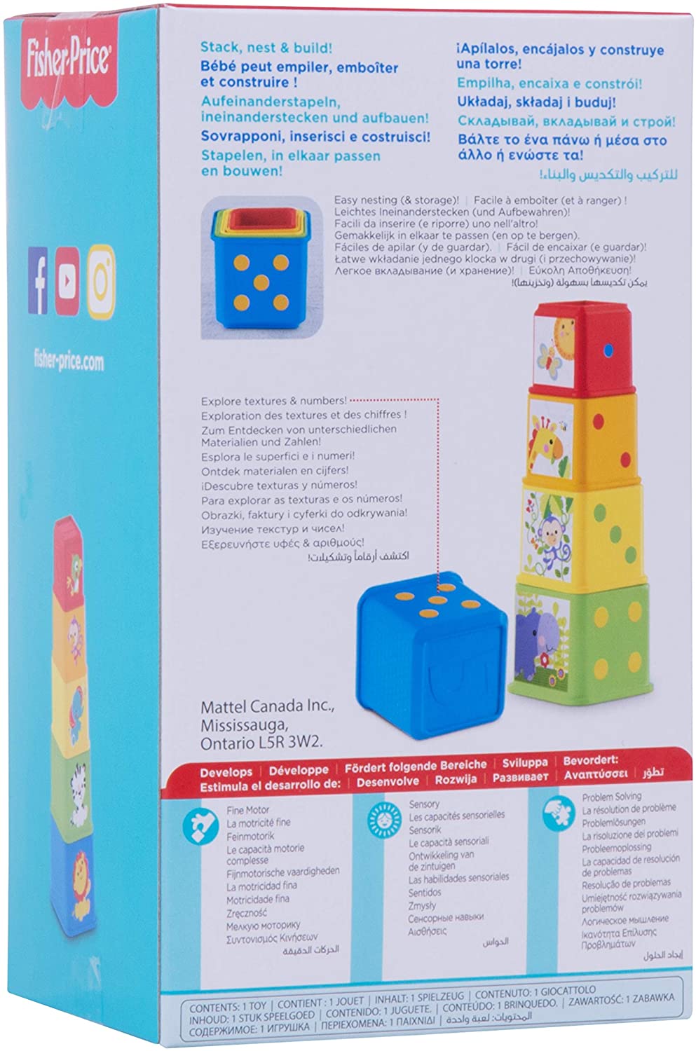 The Fisher-Price Stack & Explore Blocks is full of stacking, nesting, and sensory fun for your baby to discover. Each 5-sided block features bright colors, interesting textures, cute characters, numbers, and familiar first objects. Baby can stack the blocks, nest them one-inside-another, or place them side-by-side to build a colorful scene!