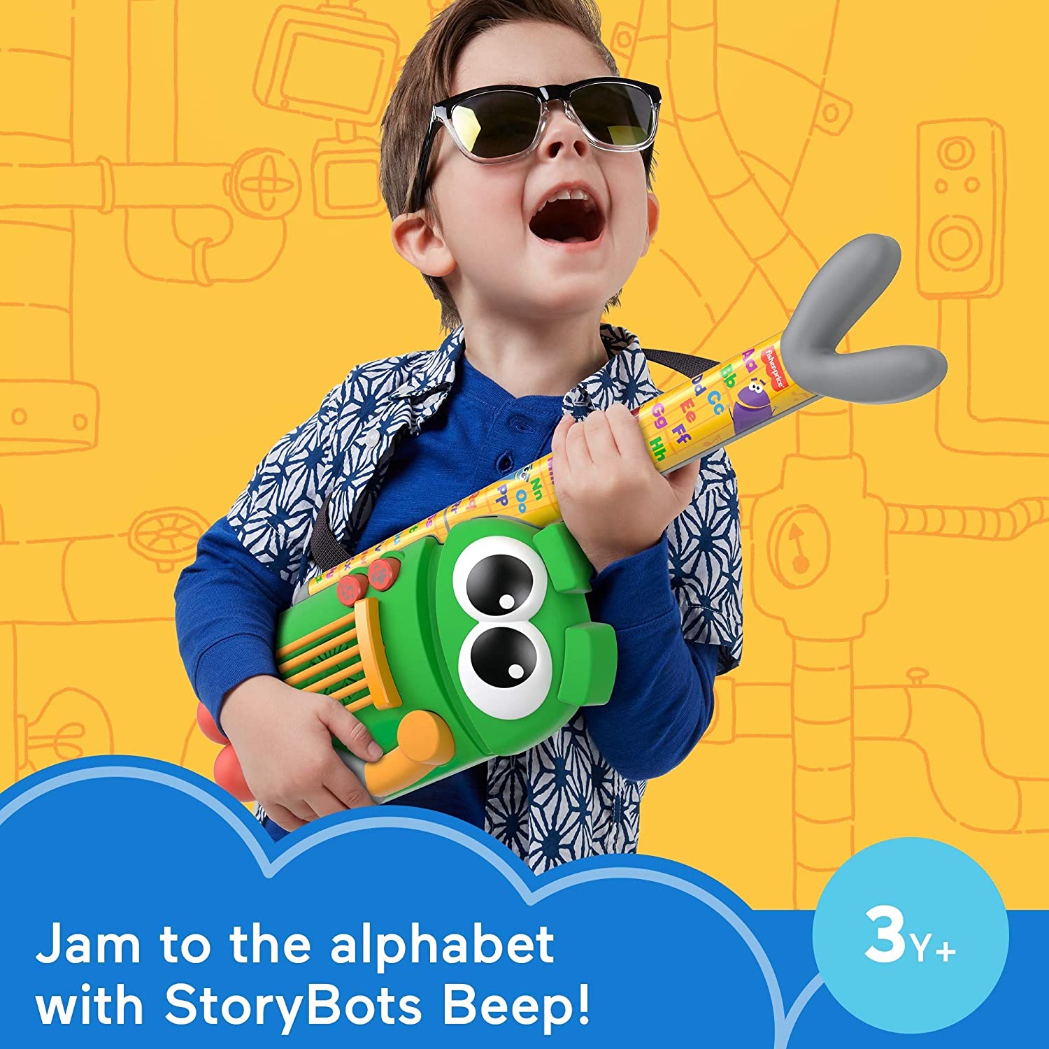 • Toy guitar that teaches letters of the alphabet and phonics with fun StoryBots songs and phrases