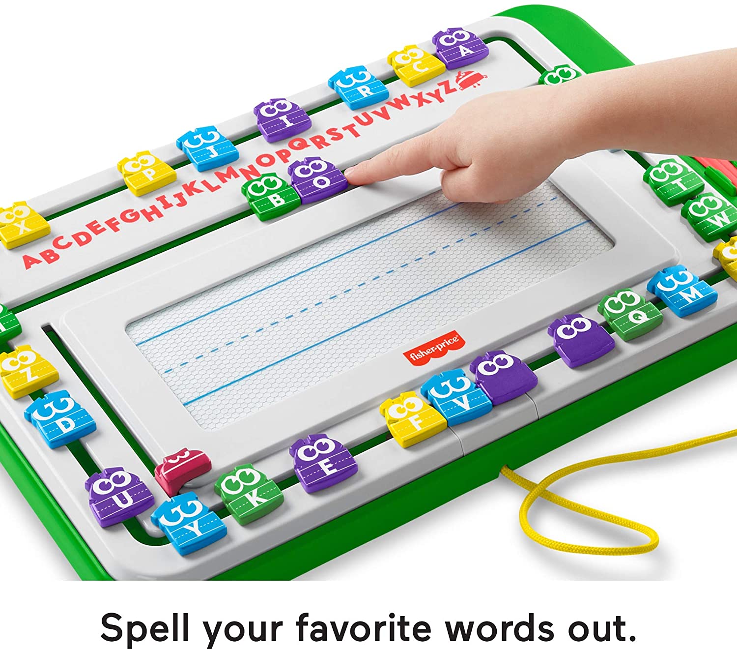 - Promotes early literacy as preschoolers practice writing letters and spelling words