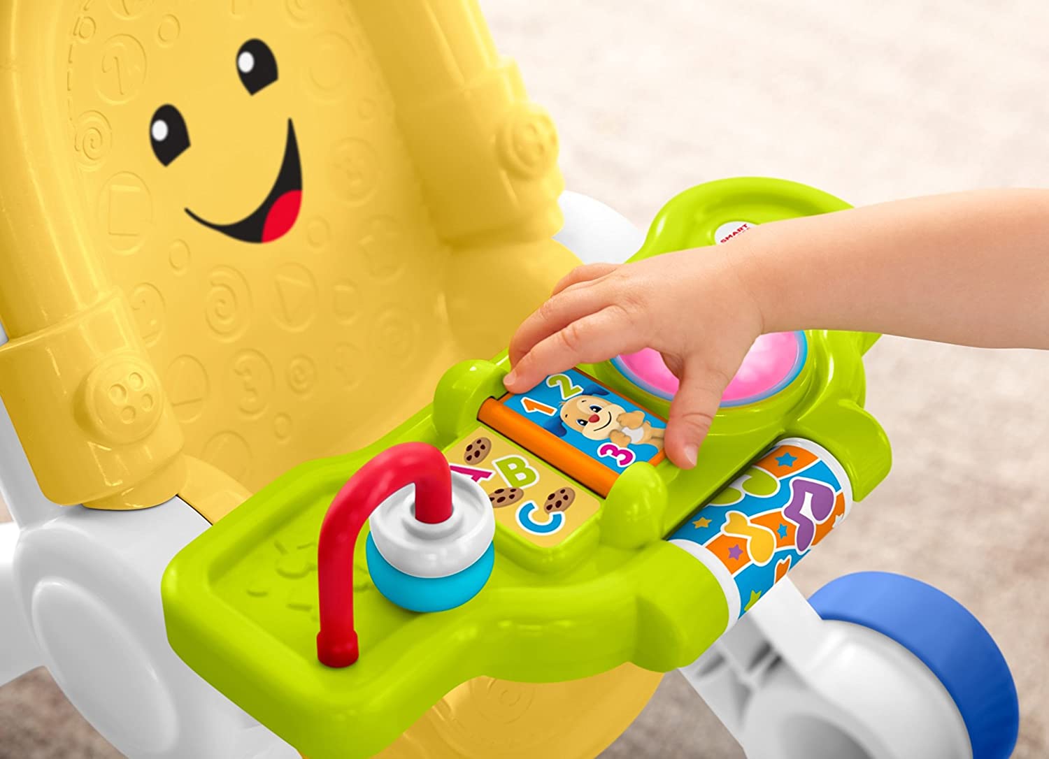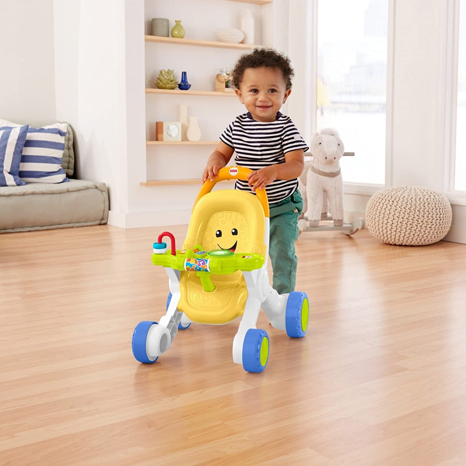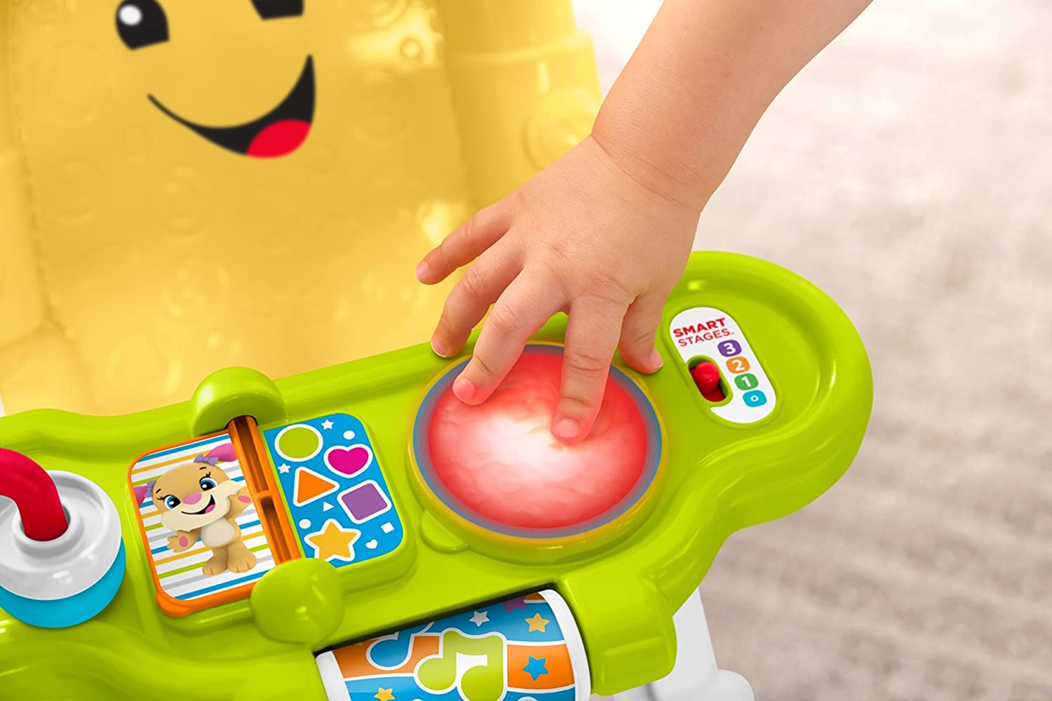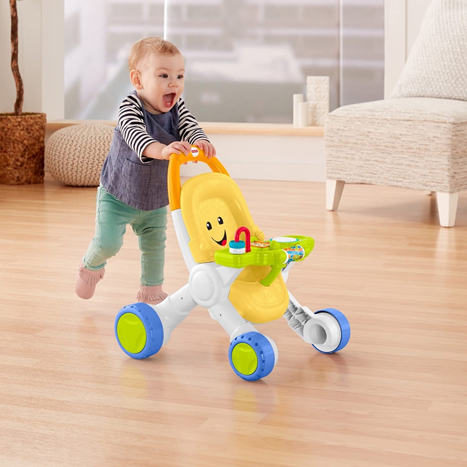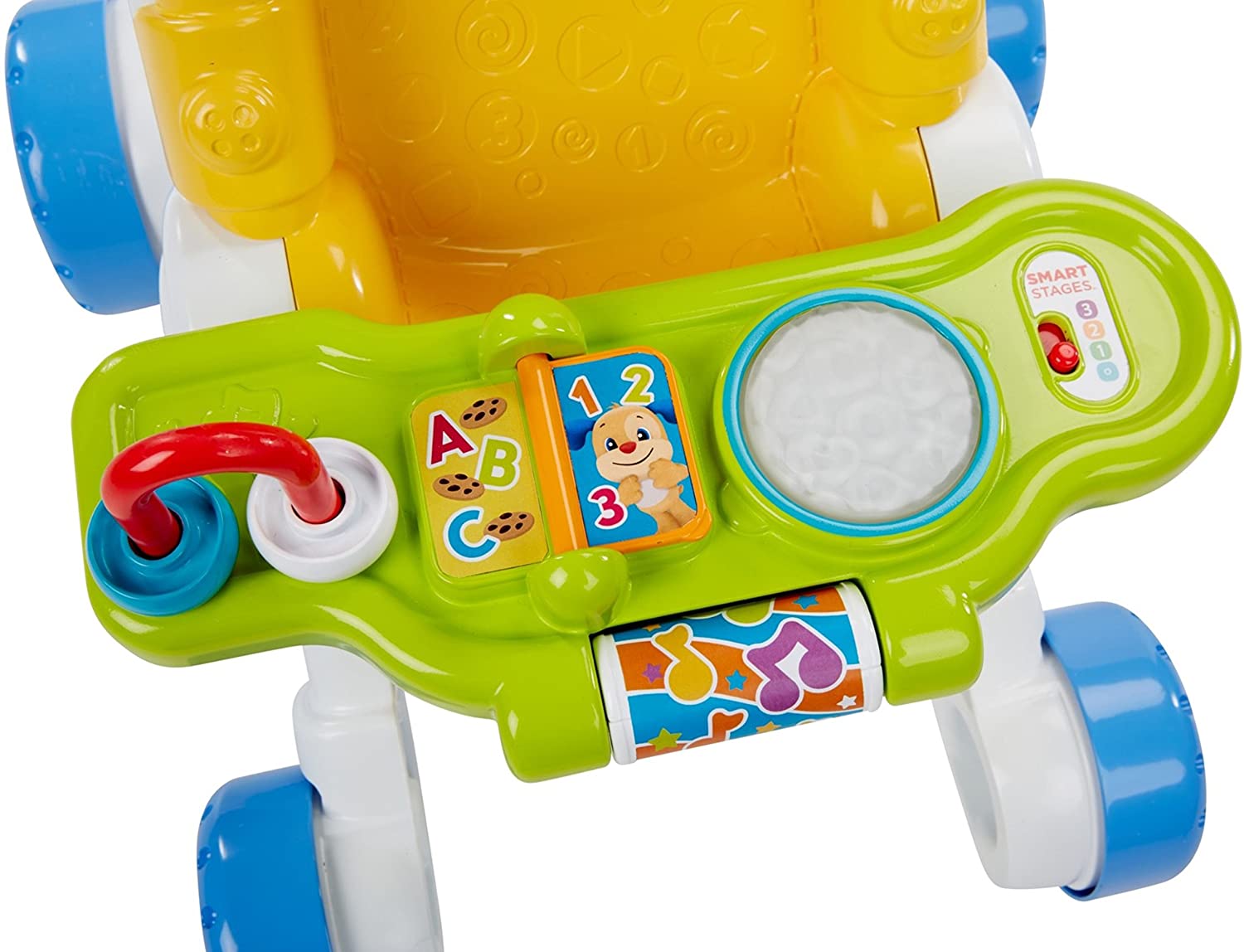 Let's stroll, baby! This stroller-themed walker helps steady your baby's first steps with encouraging songs and sounds to keep those little feet moving. The interactive activity tray offers exciting hands-on play that introduces little ones to colors, shapes, numbers, and more. Plus, Smart Stages technology lets you change up the learning content when your baby is ready!