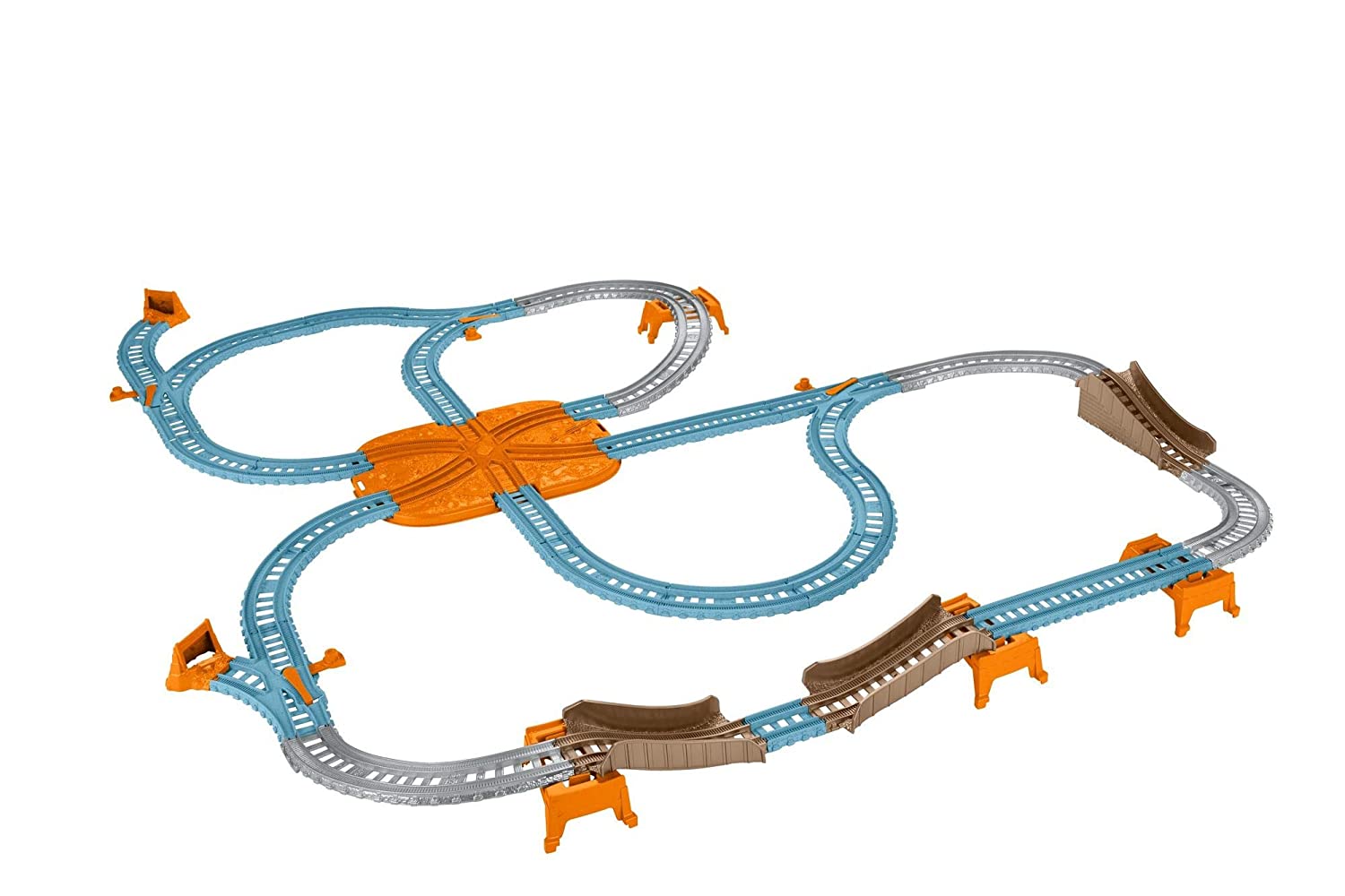 Kids can build a bigger Fisher-Price Thomas & Friends TrackMaster, world with the Blue Mountain Builder Bucket! Featuring over 40 colored track pieces, the Blue Mountain Builder Bucket lets children expand their motorized railway by building a variety of individual layouts, or connecting to other TrackMaster toy train sets (sold separately and subject to availability). Plus, the unique colors and styling of the track pieces are inspired by Blue Mountain Quarry, one of the most popular locations on the Fisher-Price Thomas & Friends TV show. This massive collection includes curved and straight track pieces, buffers, directional switches, and risers, so kids can incorporate height and elevation as they create their own custom-made Fisher-Price Thomas & Friends railway! The bucket acts as storage for track pieces, and the lid can be built into the layouts as a 6-way crossing for TrackMaster motorized toy trains (trains sold separately). The TrackMaster Blue Mountain Builder Bucket, gives children the freedom to create, expand, and explore!