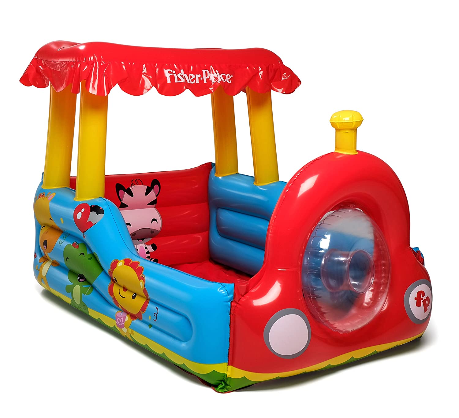 This fun, inflatable ball pit features 25 play balls and a secret doorway for children to enter and exit. Squeeze the horn and hear a special sound. Great for ages 2 and up. All game balls are phthalate free.