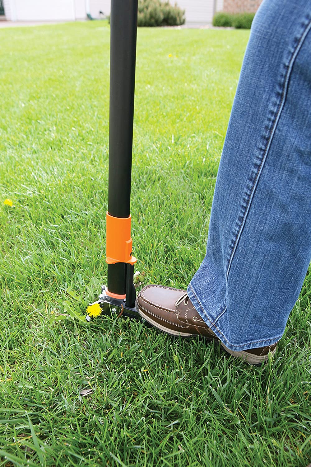 Fiskars stand-up weeder makes it easy to permanently remove invasive plants without sore knees from kneeling, back ache from bending or harsh, costly chemical herbicides that need to be applied multiple times. Just place the head over a weed, step down on the foot platform, and the three serrated, stainless-steel claws will grab the weed by the root for clean removal. An easy-eject mechanism on the handle clears the head between uses for quick and easy cleanup.