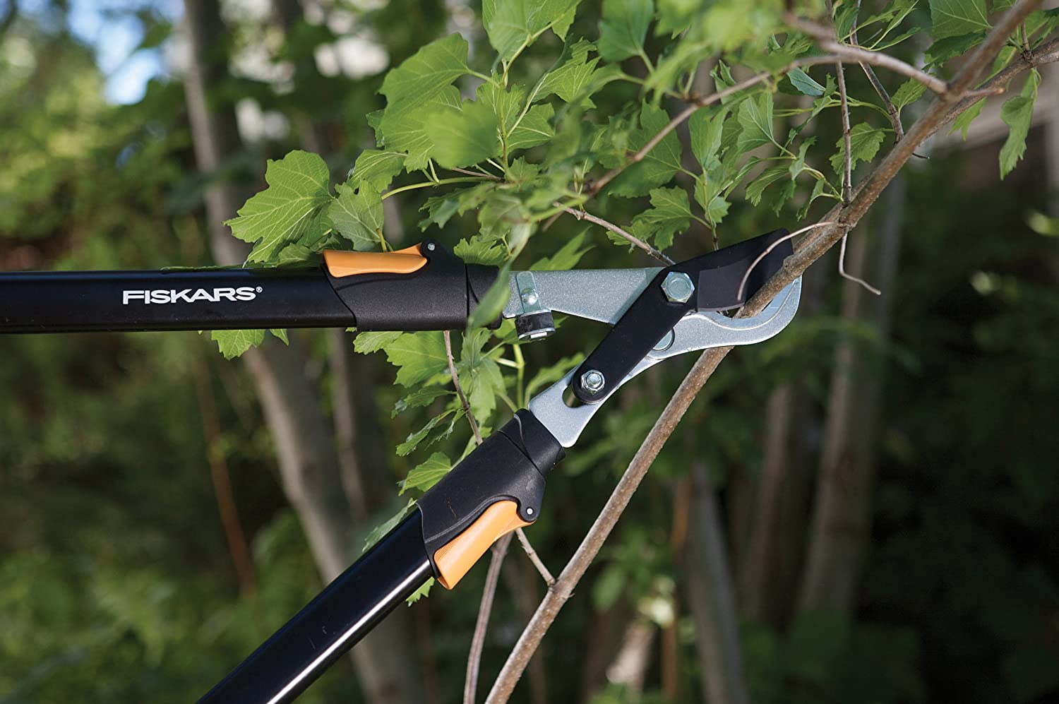 Fiskars Extendable Power-Lever Lopper features compound lever technology that multiplies your leverage to give you up to two times more cutting power than traditional single-pivot loppers. It also includes extendable handles so you don’t have to strain and reach to cut a high branch. A fully hardened, precision-ground steel blade stays sharp, and a rust-resistant, low-friction coating makes every cut even easier. The durable steel construction includes handles with Softgrip touchpoints for a secure, comfortable grip.