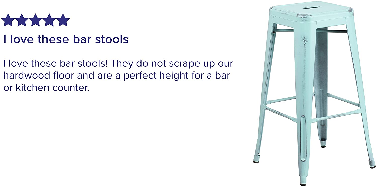No matter the atmosphere, modern, bungalow or industrial chic this distressed stool will have no problem fitting in. The dining stools can be stacked away for storage and include plastic bumper guards to protect the frame finish. Lower support braces double as a footrest to promote proper seating posture and an improved sitting experience.