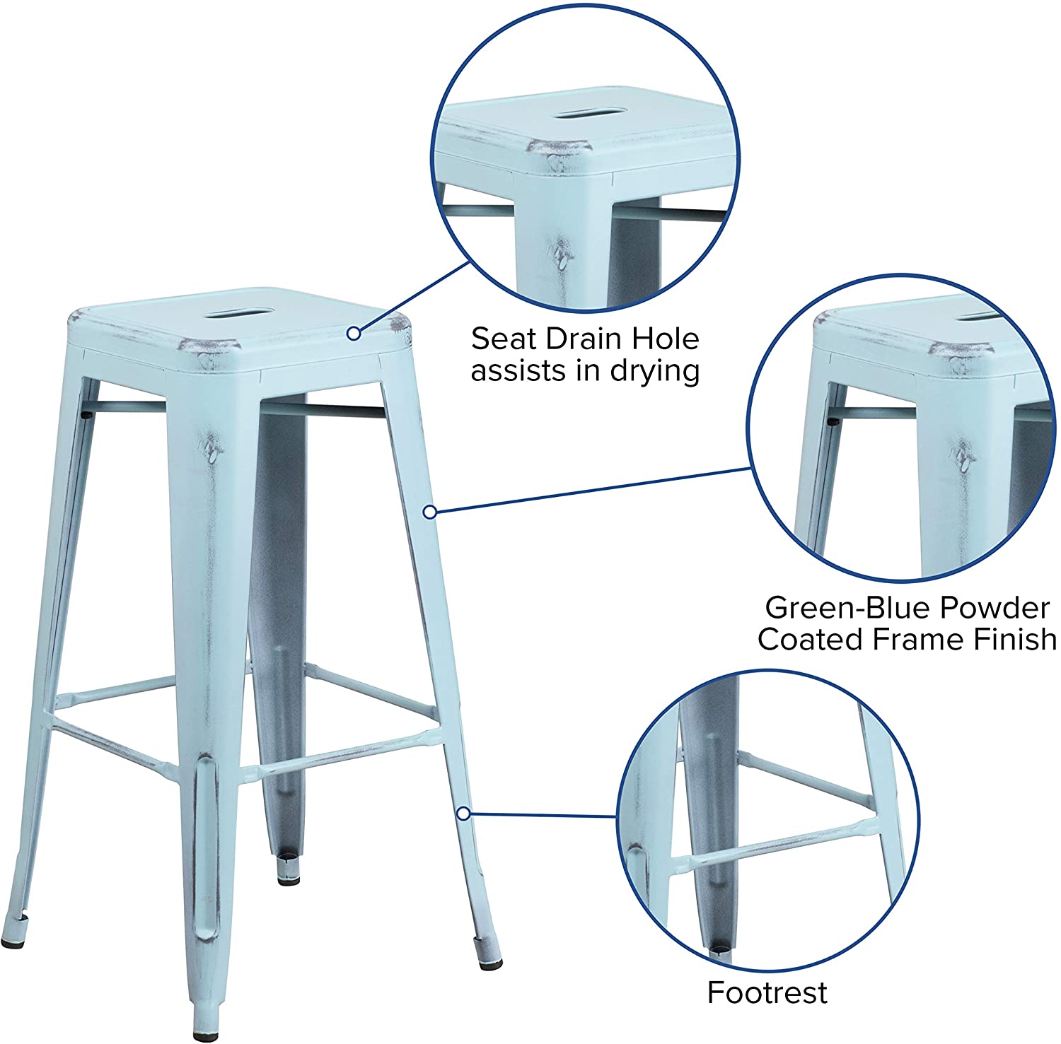 Deck out any area in your residence or commercial establishment with this multi-functional metal bar stool. Backless stools are excellent space-savers that fit effortlessly in kitchens, dorm rooms, man caves and garages. High school and college students love trendy-looking furniture, add these distressed backless stools around campus.