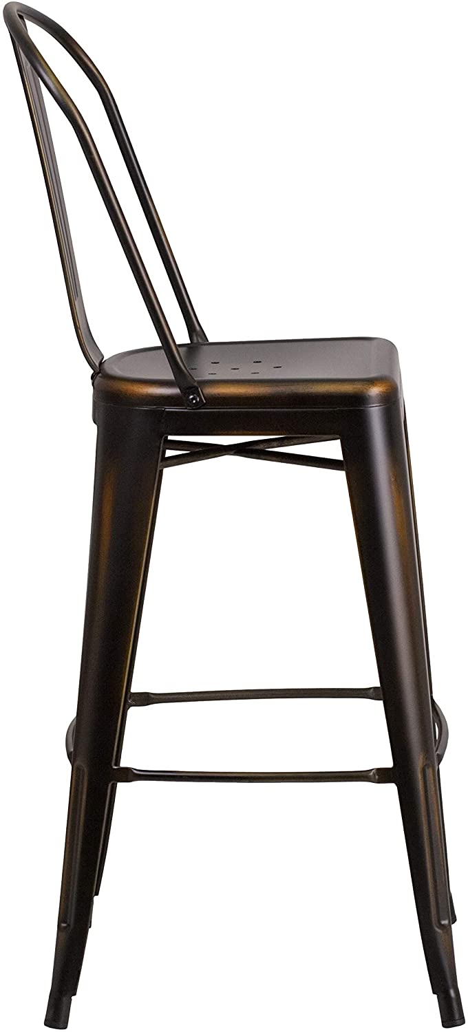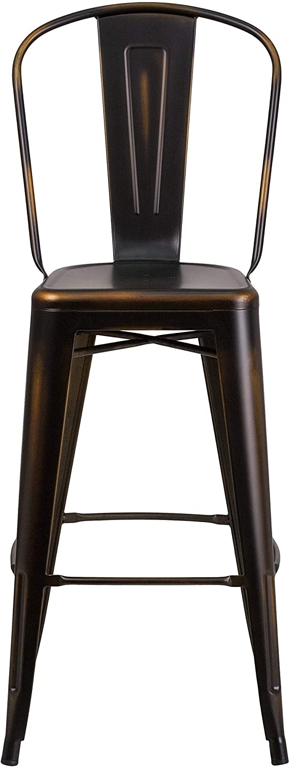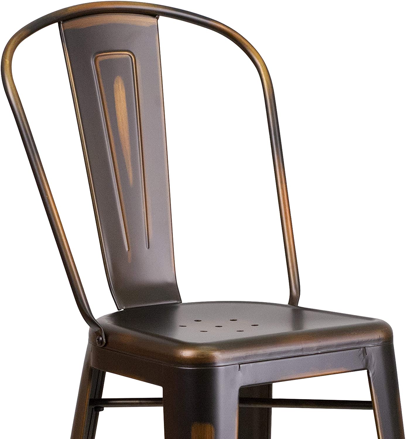 Durably constructed, this bar height stool will instantly modernize your restaurant, cafe, or bar by adding splashes of color. Metal barstools with backs provide a comfortable sitting experience, the full back is ergonomically curved and includes a vertical slat. The lower support braces double as a footrest, promoting proper posture.