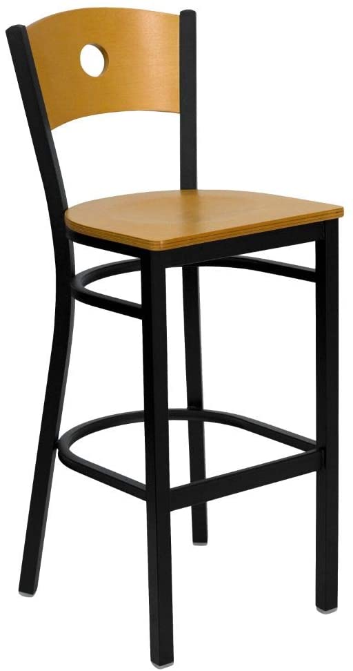 Color:Natural Wood Back/Natural Wood Seat/Black Metal Frame | Size:1 Pack