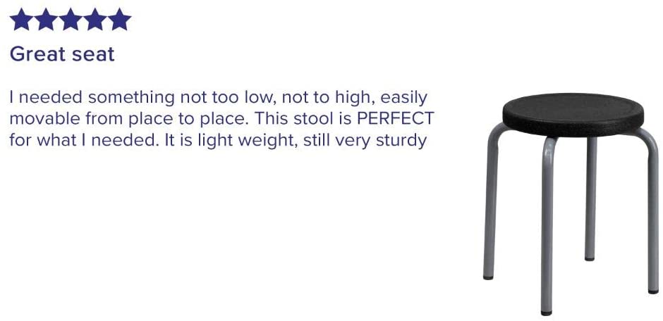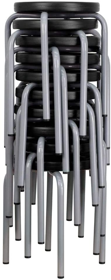 Form a creative space while keeping your footprint small with this black plastic stackable stool. This petite sized stool is a standard seat height to accommodate young kids and adults alike. The stack design is ideal in classroom settings and pediatric offices. Younger children will enjoy this seat for story time, teens can use it for discussion groups and adults can use it in garages and workshops where they need a simple seating solution.