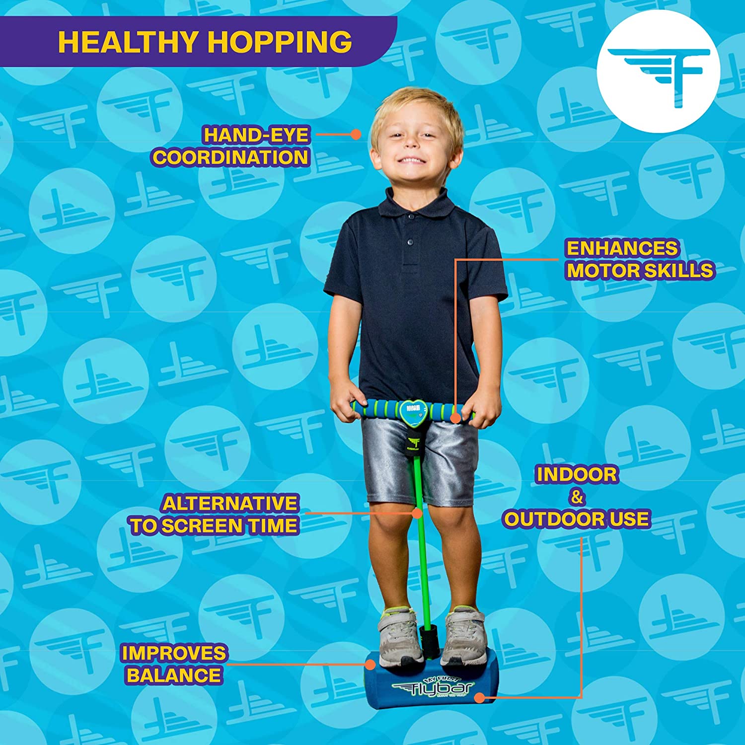 Boing; Boing, Squeek! The My First Flybar foam pogo stick is hours of healthy, bouncy fun. Crafted from durable foam, this is an ideal first pogo stick for kids; each jump makes a fun squeaky sound destined to delight