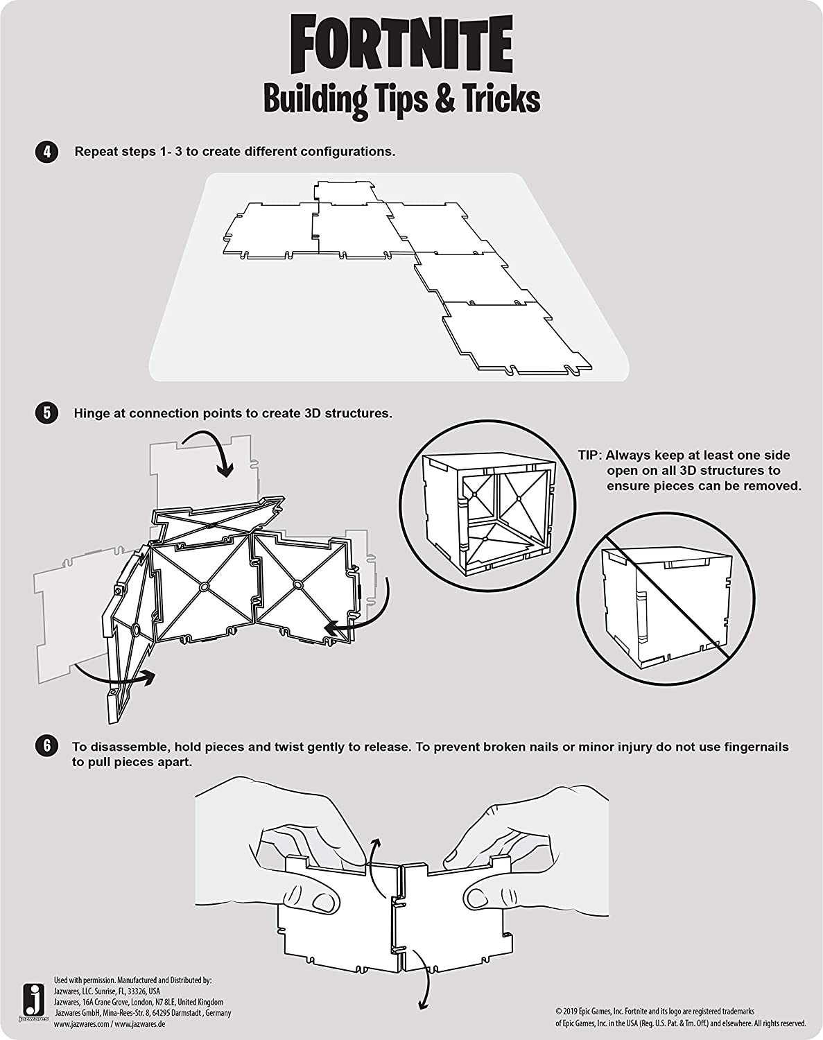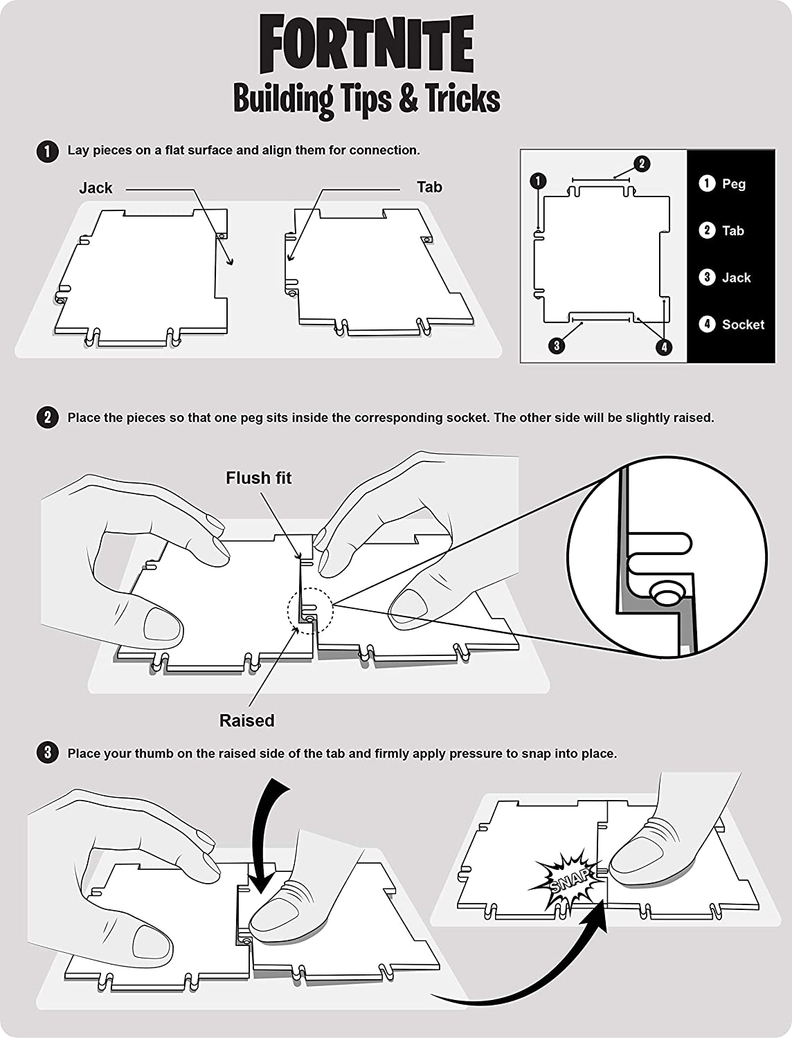 - Collect and connect building materials to create structures! Build a Llama, a 1x1, A battle scene and much more! Additional building materials sold separately & subject to availability