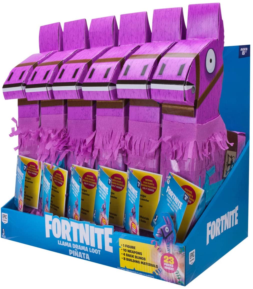 The Fornite Llama Piñata is busting open with the best loot from the game and brings the unboxing experience to the next level with an exclusive “Rust Lord” action figure, loads of epic and legendary weapons, Back Bling, and more!