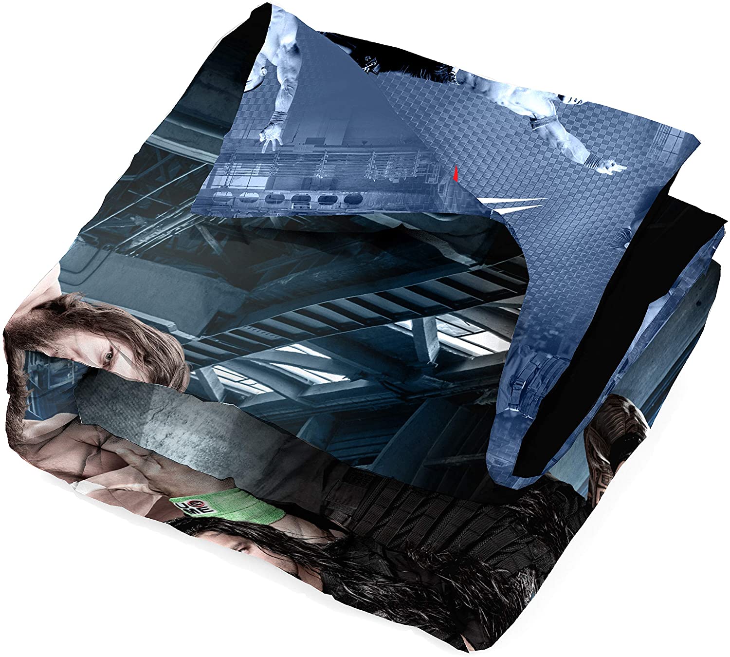 • ★ TWO DESIGNS IN ONE COMFORTER: Get two great looks in one with a reversible comforter that features bold imagery of wrestling superstars John Cena, Roman Reigns, Randy Orton, and Hobo Henry on one side and an all-over WWE logo design on the other.