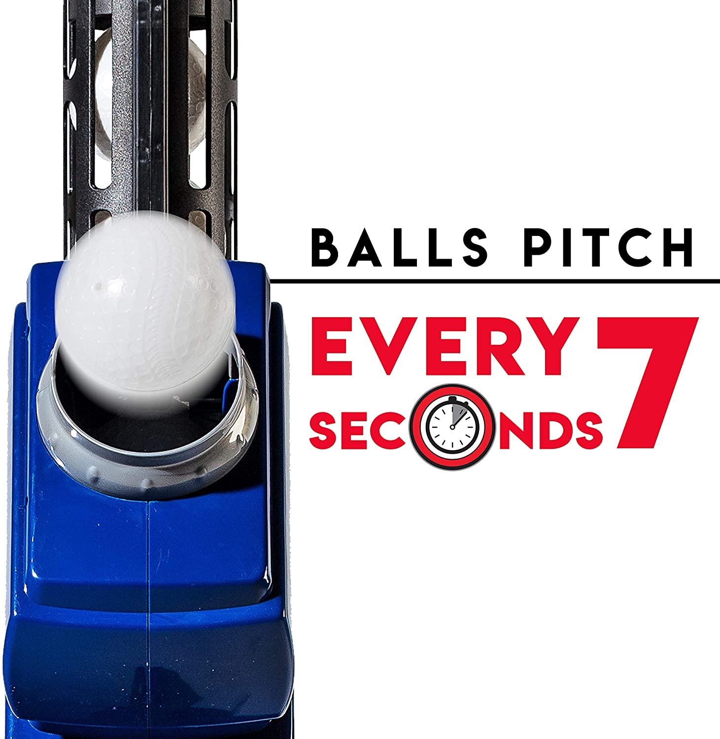- Balls included: This pitching machine comes with 6 compatible plastic baseballs to put in the ball feeder which can hold up to 9 balls at once! Balls pitch every 7 seconds!