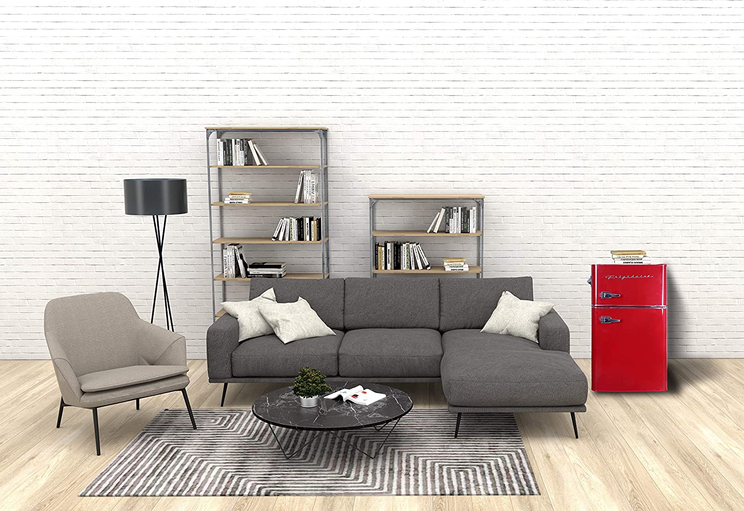 Keep snacks fresh in this 3. 2 cu. ft. two-door Frigidaire bar refrigerator. The flush-back design lets you place it close to the wall to save space, and the handy built-in bottle opener eliminates the need to search through gadgets. The silver decorative embellishments on this black Frigidaire bar refrigerator convey a sleek, stylish look.