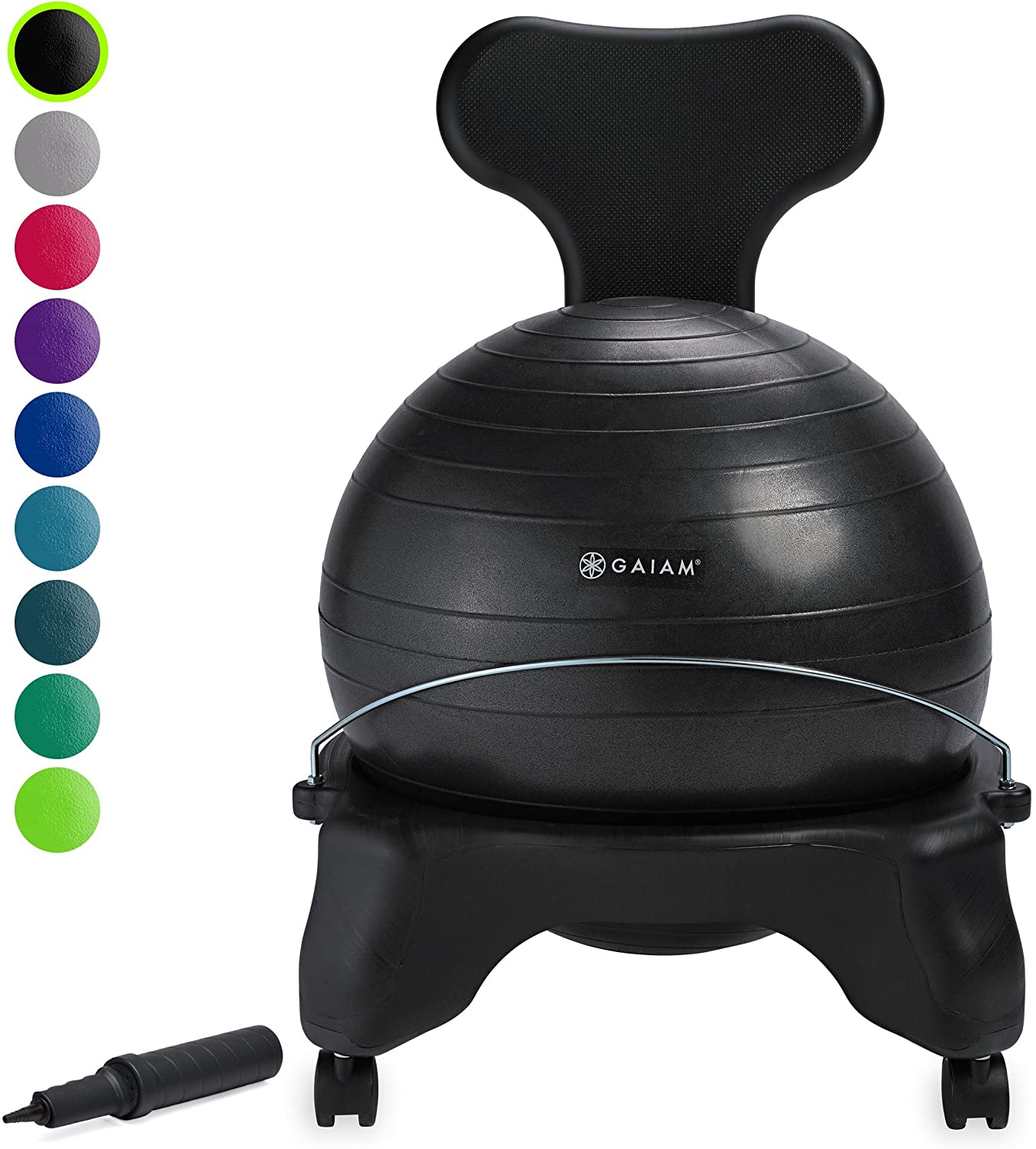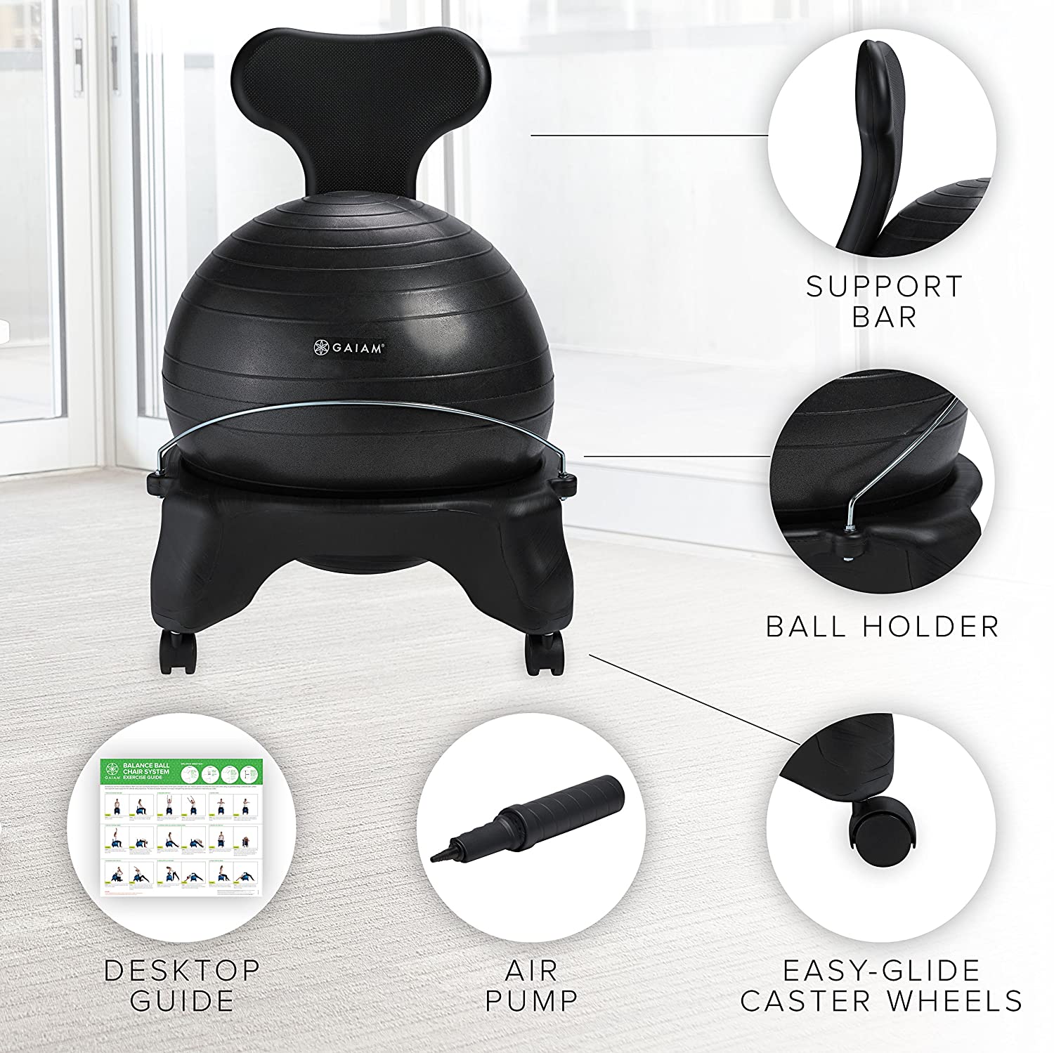 Gaiam Classic Balance Ball Chair – Exercise Stability Yoga Ball Premium Ergonomic Chair for Home and Office Desk with Air Pump, Exercise Guide and Satisfaction Guarantee