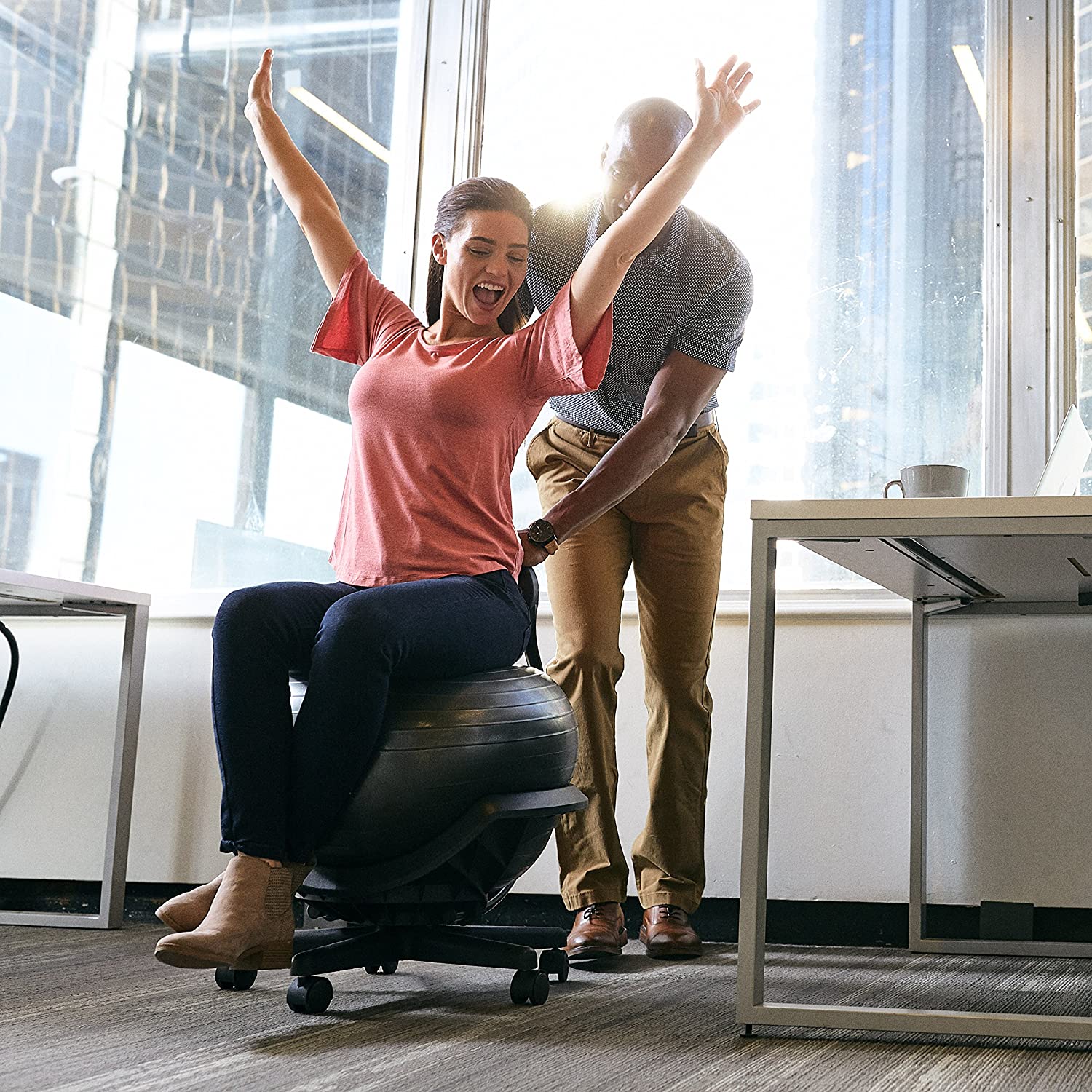 Gaiam Ultimate Balance Ball Chair (Standard or Swivel Base Option) - Premium Exercise Stability Yoga Ball Ergonomic Chair for Home and Office Desk - 52cm Anti-Burst Ball, Air Pump, Exercise Guide
