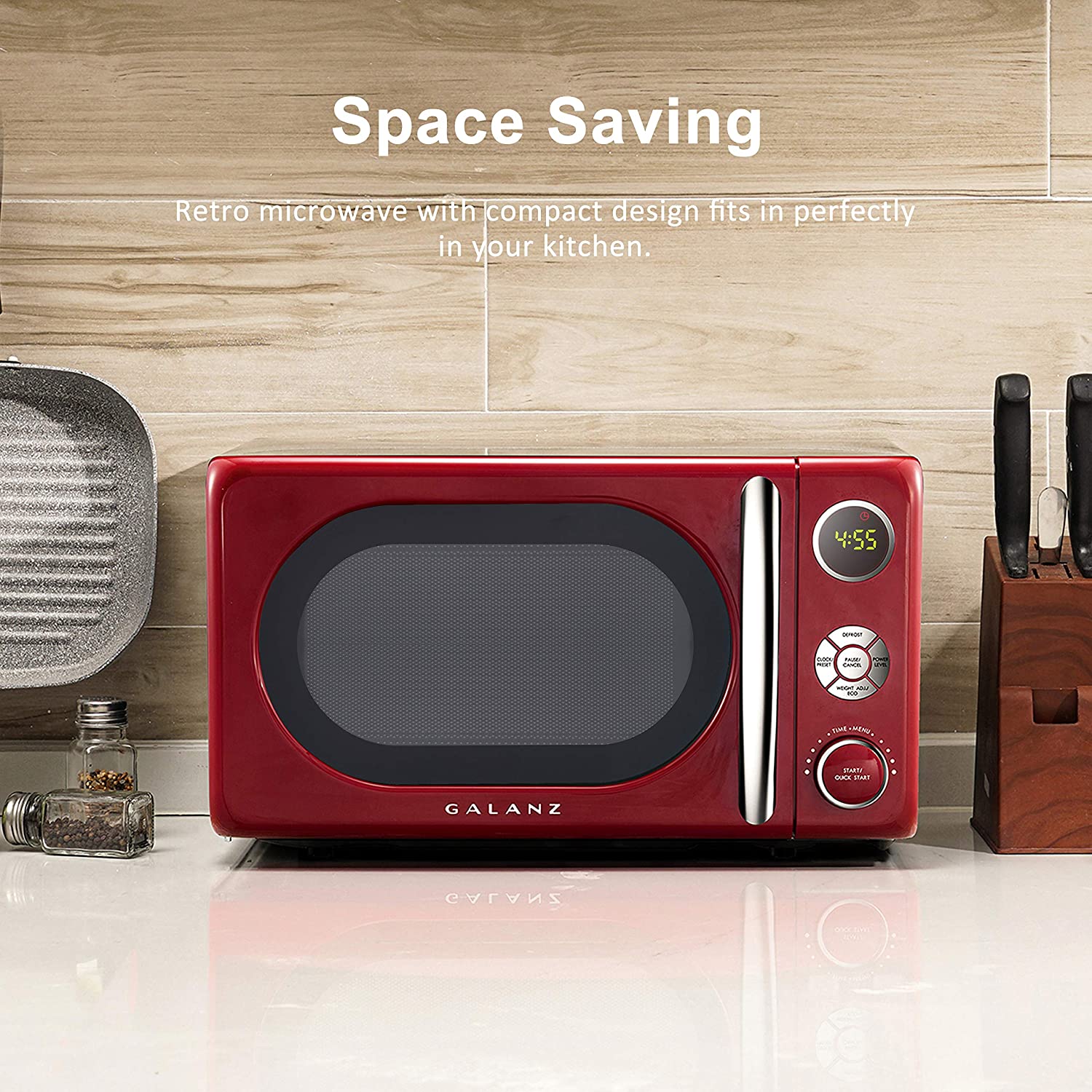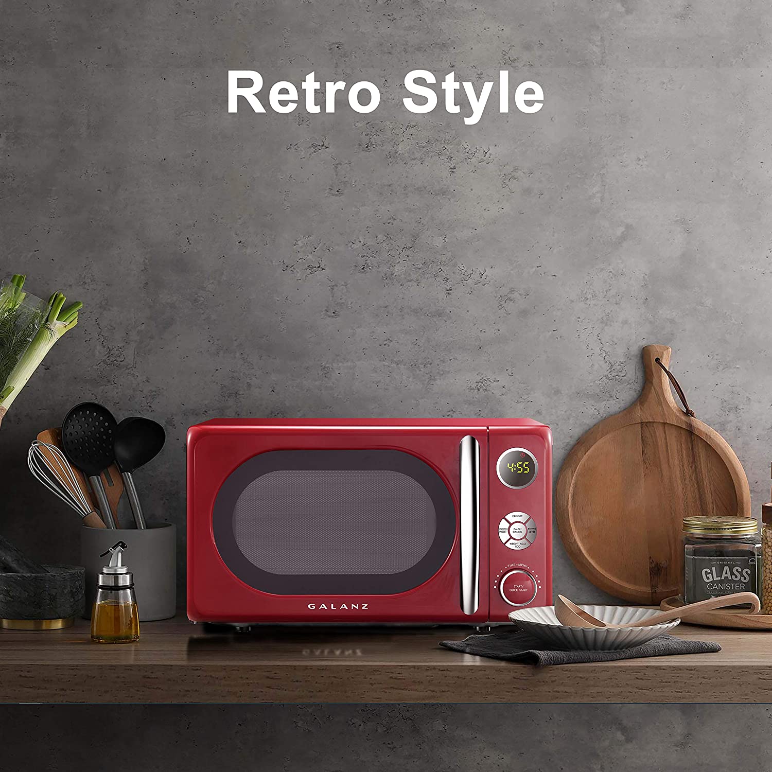 Retro style compact countertop microwave oven offers modern design, bold colors and brings a touch of nostalgia into any kitchen, dorm room or office. Makes cooking and reheating meals or beverages simple, quick, and convenient.