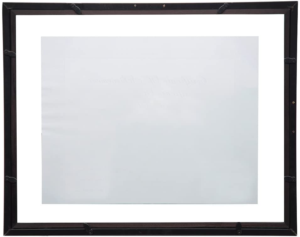 Gallery style design features a sleek flat black frame profile with two glass panes to insert your document between for a floating effect.