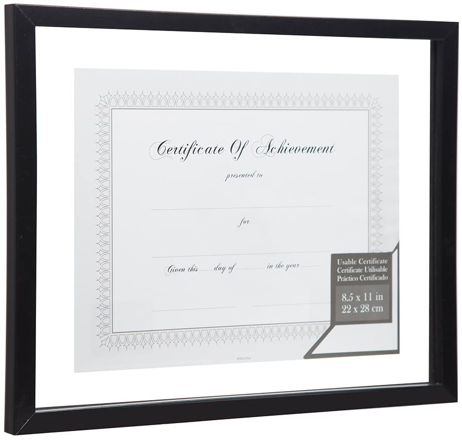 Transform sparse walls into a gallery wall to show off awards, certificates or even children's art. Our Gallery Solutions 11x14 Black Float Document Frame is ideal for floating documents or images 8.5 inches x 11 inches or smaller.