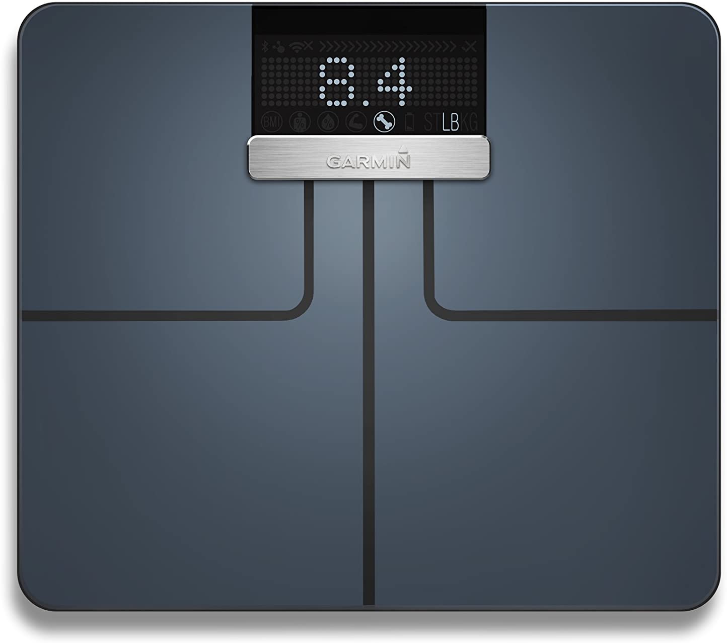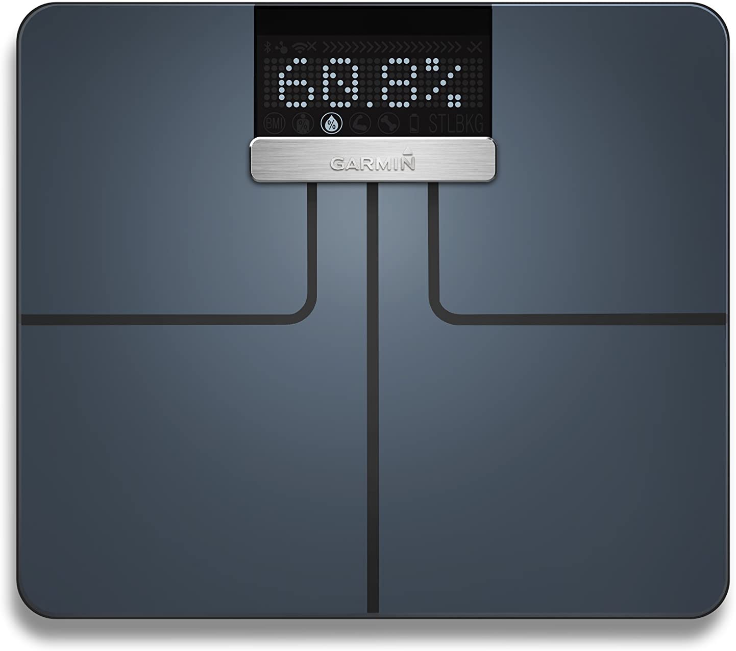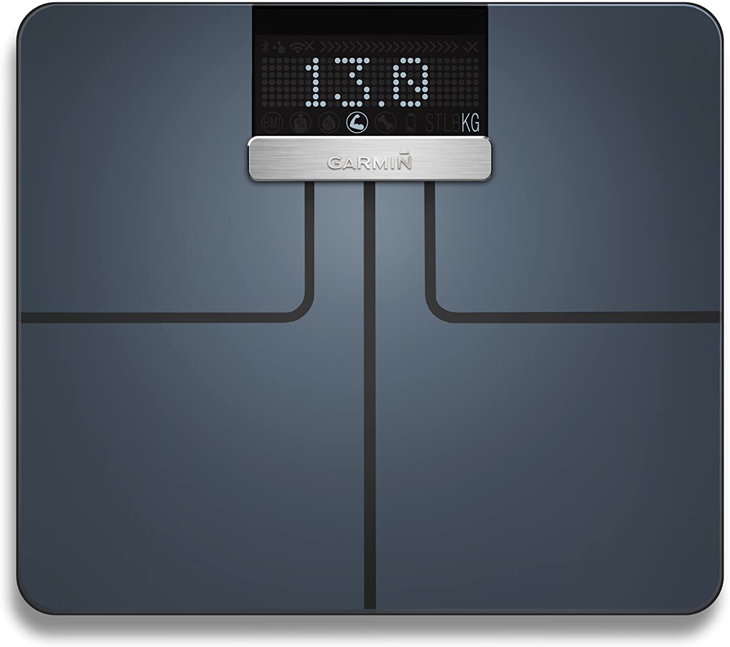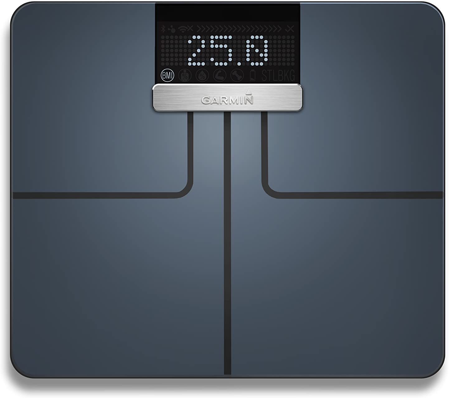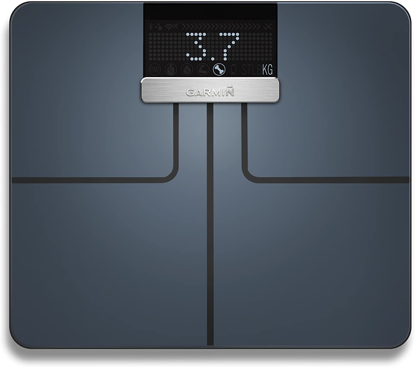 - IN-DEPTH METRICS - Garmin Index measures metrics that matter such as weight (lb, kg, st), BMI, body fat and water percentage, and skeletal muscle mass and bone mass.