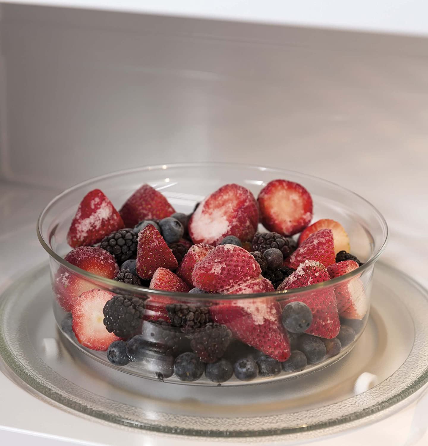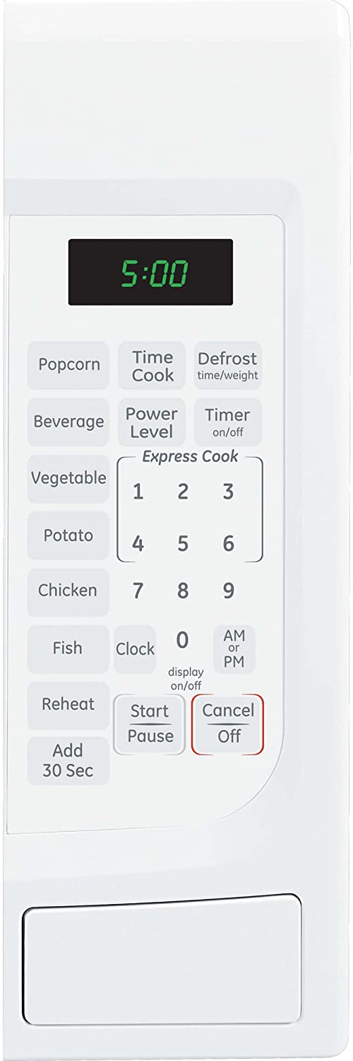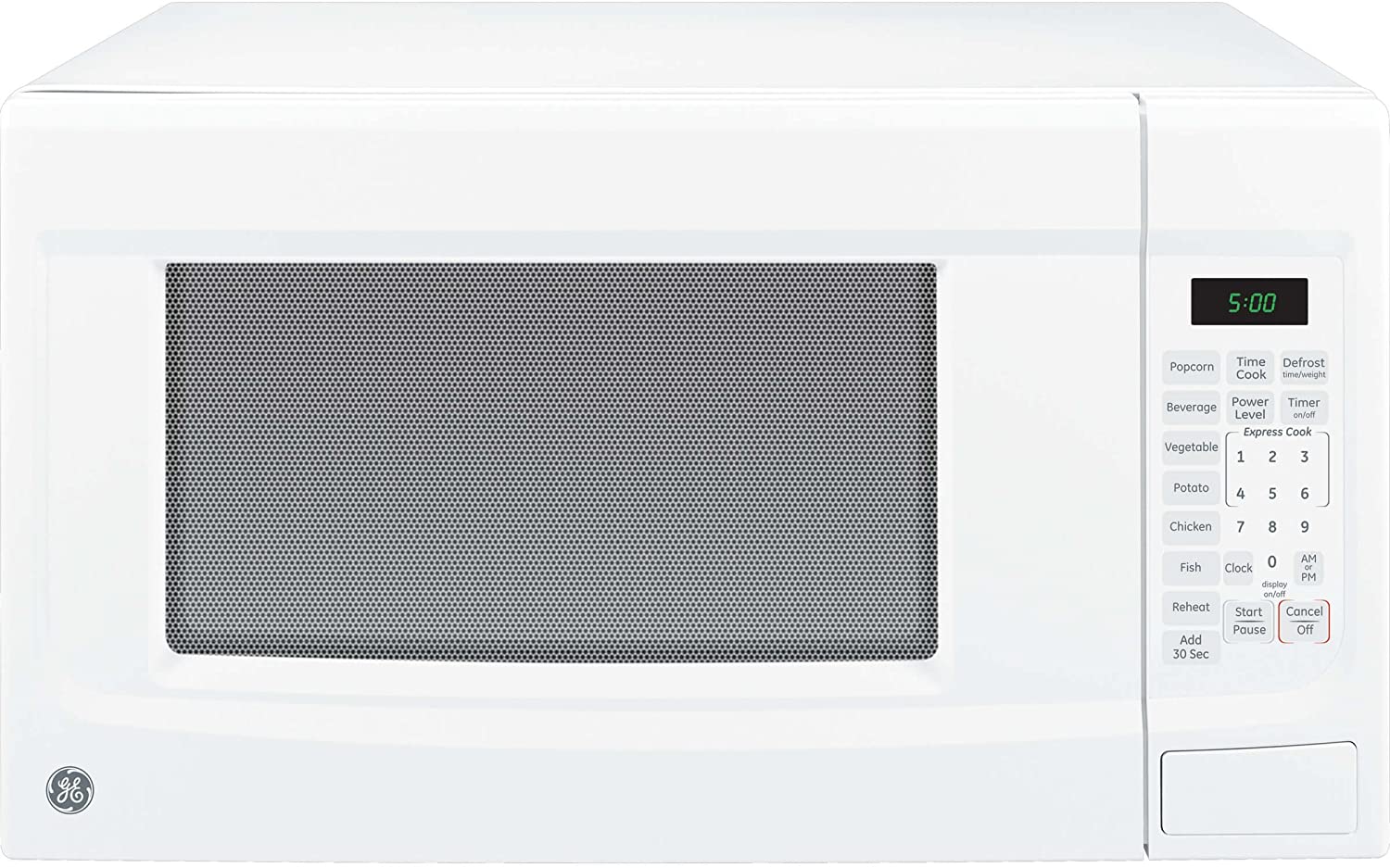 GE appliances provide up-to-date technology and exceptional quality to simplify the way you live. With a timeless appearance, this family of appliances is ideal for your family. And, coming from one of the most trusted names in America, you know that this entire selection of appliances is as advanced as it is practical. 1.4 cu. ft. capacity 1100-Watt (IEC-705 test procedure) Sensor cooking controls automatically adjusts time and power for delicious cooking results Weight and time defrost simply enter the weight of the food and the oven automatically sets the optimal defrosting time and power level or set your desired time for defrosting Turntable rotates food throughout the cooking cycle for even cooking results Instant on controls where cooking and reheating happens instantly at the touch of a button Control lockout provides peace of mind by locking the oven and preventing accidental activation Timer on/off so oven timer can be set to countdown a specific amount of minutes to help watch the time for you Power cord Length 36 in. Push button open White on white"
