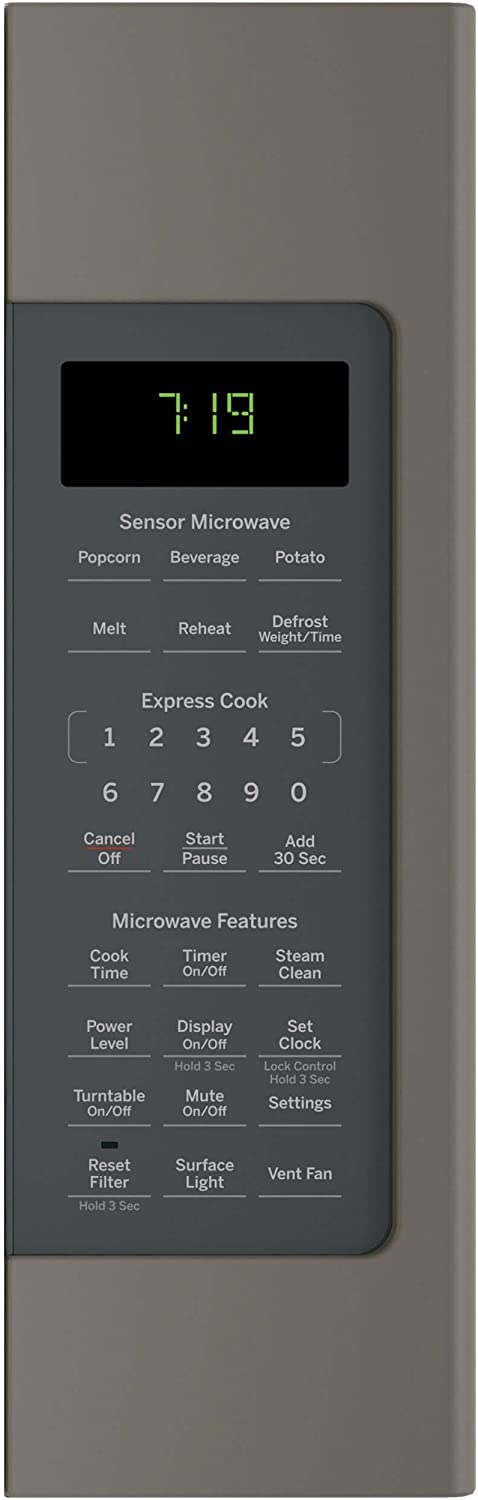 1 9 cu ft capacity - 1000 Watts (IEC-705 test procedure) Easy clean enamel interior - Makes cleaning spills and splatters a snap Easy clean with steam clean - Messes inside the microwave are easy to wipe away after steam loosens food grime Weight and time defrost - Simply enter the weight of the food and the oven automatically sets the optimal defrosting time and power level or set your desired time for defrosting Upfront charcoal filter with indicator light - Light indicates when odor-removing charcoal filter needs to be replaced