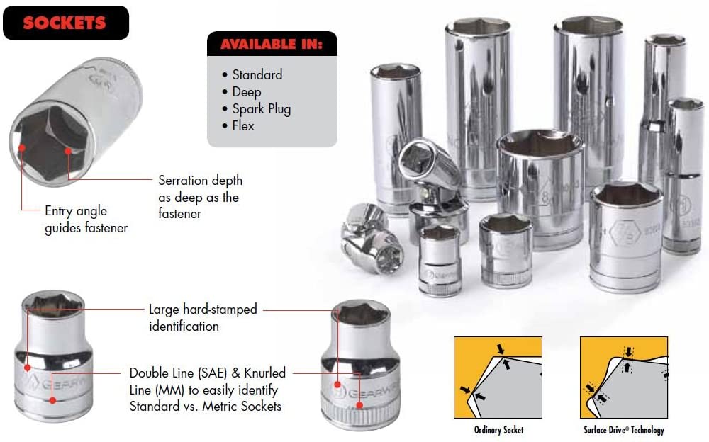 The KD Tools 80553 13 Piece 3/8-Inch Drive 6 Point Standard SAE Socket Set features sockets made of fully polished, nickel chrome plated alloy steel. Large hard-stamped part numbers and size on both sides of the socket allow for easier viewing of the socket sizes, and double lines make it easy to identify SAE vs. metric sockets. A turn down at the base of each socket provides excellent grip surface to pull the sockets off the ratchets. This set includes 3/8-inch drive, 6-point sockets packaged on a clip rail. This KD Tool set is covered by a lifetime manufacturer's warranty.