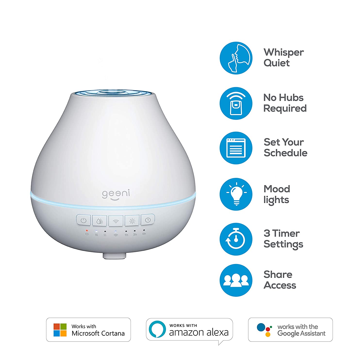 Designed to fill the air with fragrance and moisture, the Geeni spirit smart Wi-Fi Essential oil diffuser is a perfect tool for aromatic relaxation. Just add a few drops of your favorite Essential oil with water in the reservoir and unwind. Control the aroma diffuser from anywhere at anytime using your smartphone. Enrich the world around you and relax while doing it with the Geeni spirit.