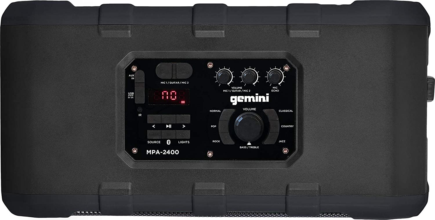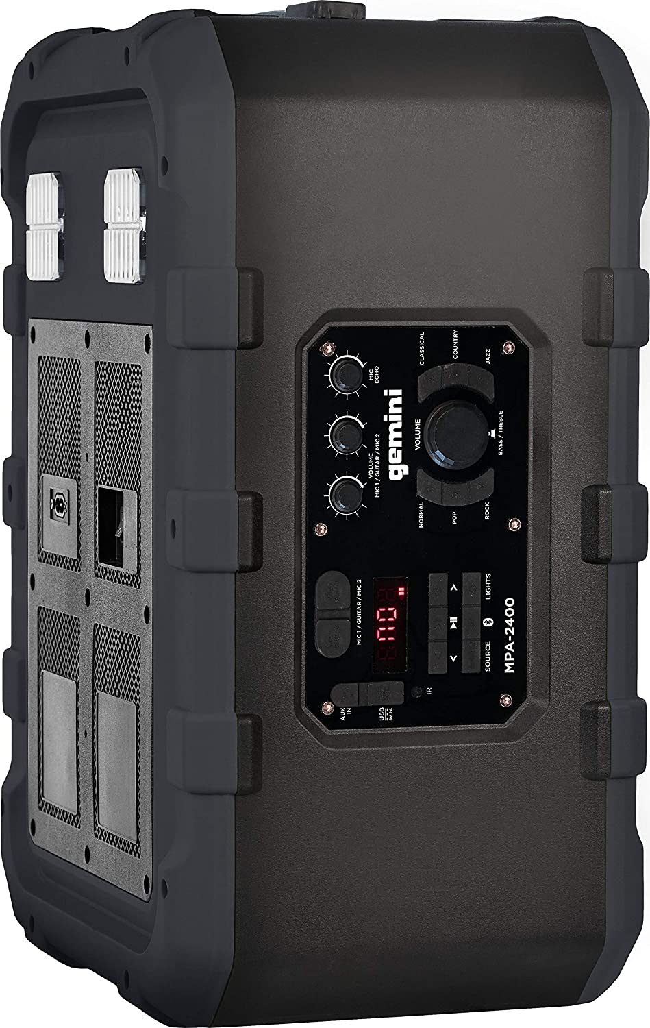 • WEATHER-RESISTANT: Built with rugged and durable material, the IPX4 rating of the Gemini MPA-2400 lets you outlast all your rain or shine adventures.