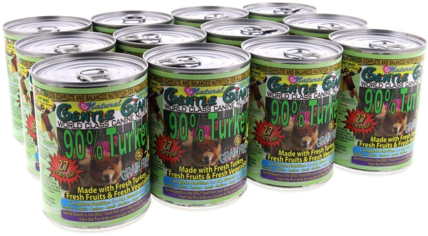 - DELICIOUS INGREDIENTS – made with 90% Turkey (Farm Raised), eight Non-GMO fruits and vegetables including blueberries, cranberries, pumpkin, apples, chickpeas, sweet potatoes, parsley and dandelion greens for excellent liver, joint and gastrointestinal health. Includes 12 13 oz cans with pull-tab lid
