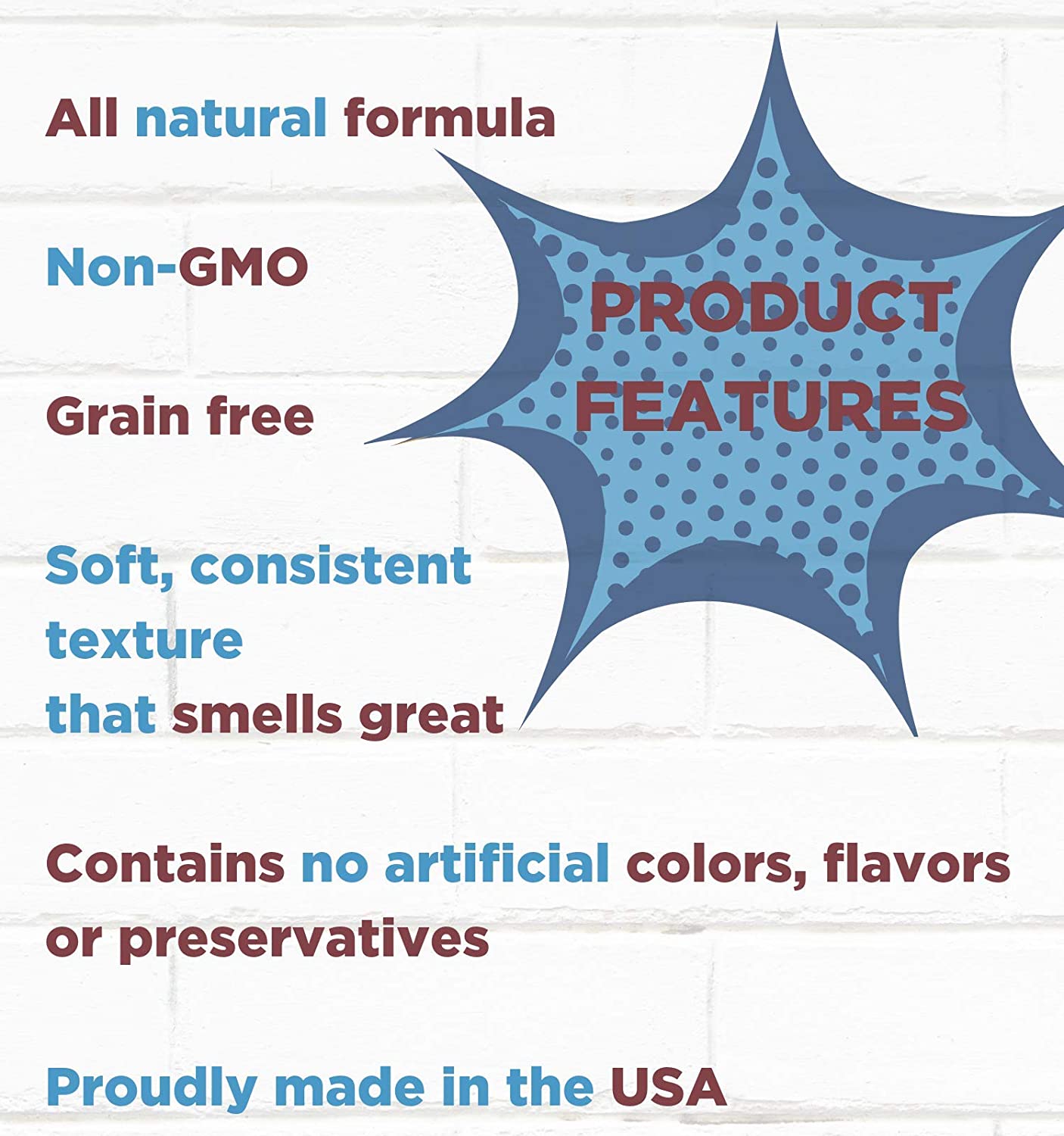 - ALL NATURAL FORMULA – MADE in the USA with a soft, consistent texture that smells great! Grain-free, contains NO GMOs, fillers, corn, wheat, soy or gluten. It contains NO poultry by-products, artificial colors, flavors, or preservatives