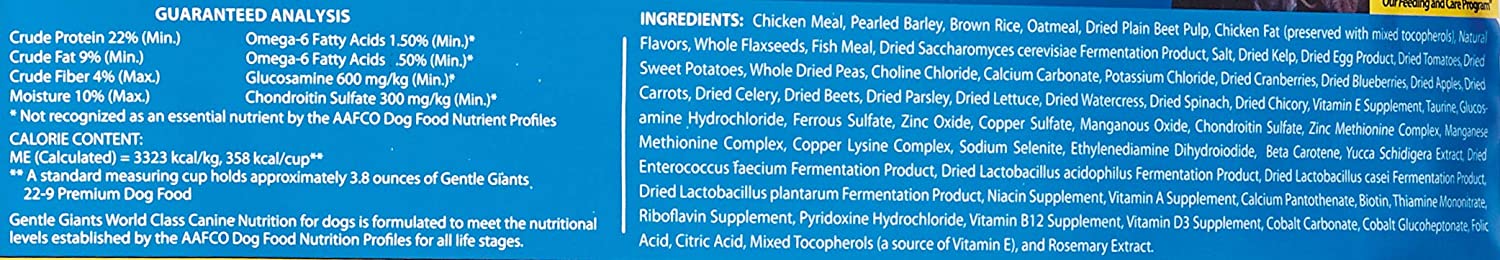 - ALL BREEDS & ALL AGES - Gentle Giants is the ONLY food your dog needs for its entire lifetime. It meets the nutritional levels of the AAFCO Dog Food Nutrient Profiles for all life stages and breeds