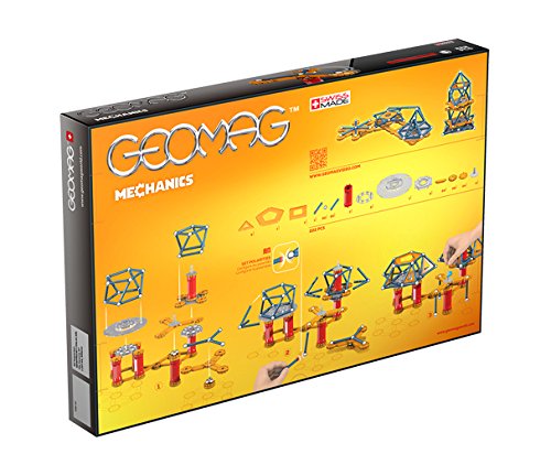 - AESTHETIC KINETICS - With all the tools necessary to make your creations, spin, flip, rotate, and whirl with beautiful colors, the Geomag Mechanics Construction Set is perfect for little engineers who want to design something exciting and kinetic! Contains 1 indicator rod, 11 various panels, 7 tubes, 28 washers, 24 feet for washers, 24 linear bars, 3 squares for bearing, 2 cages for bearing, 1 plate, and 1 cone.
