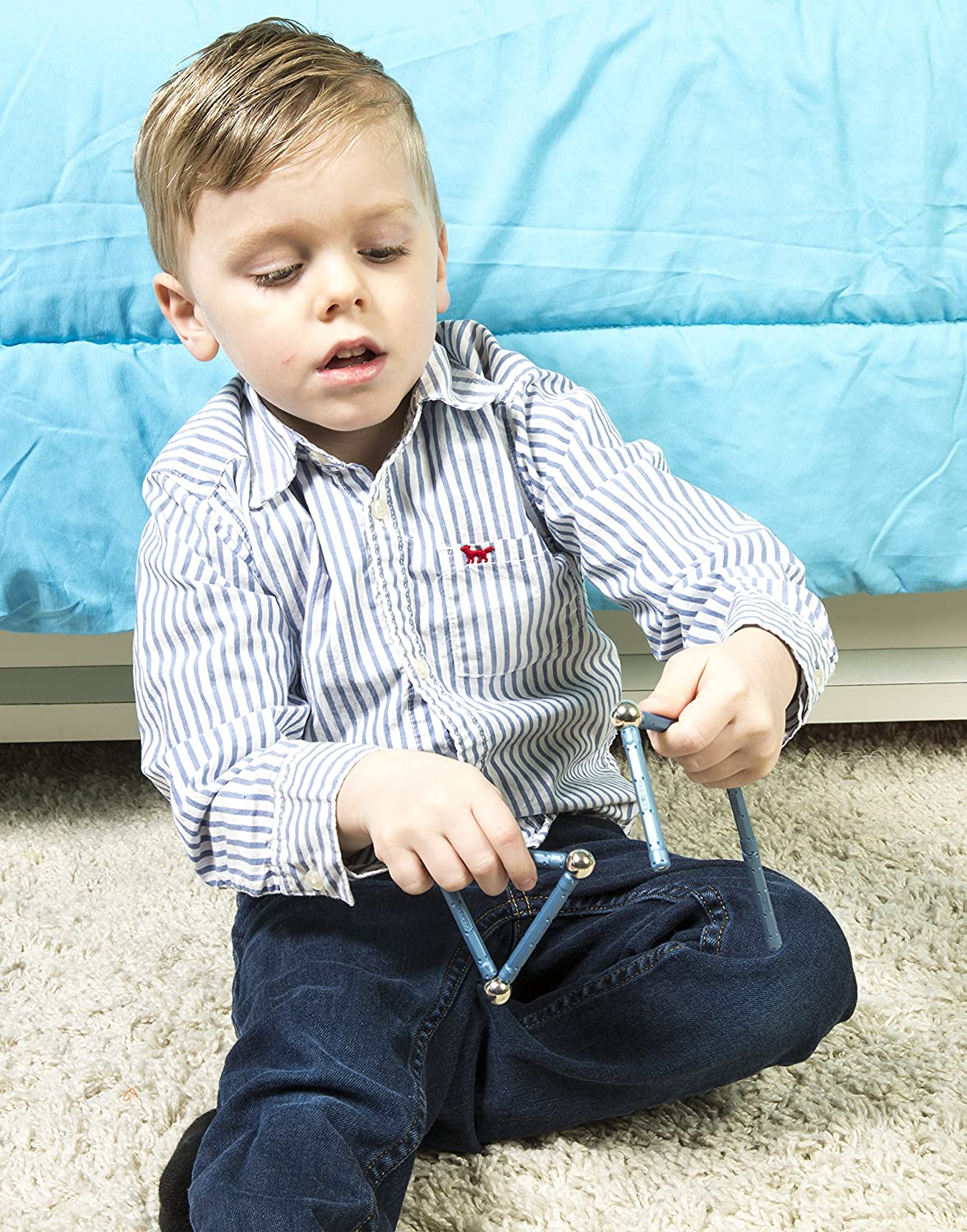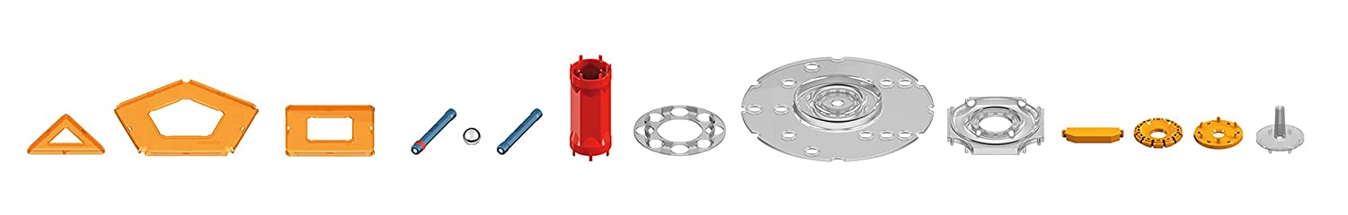 - SPECIFICATIONS - Package includes (1) indicator rod, (59) magnetic rods, (60) non-magnetic steel balls, (7) tubes, (28) washers, (24) feet for washers, (24) linear bars, (3) squares for bearing, (2) cages for bearing, (1) plate, (1) cone, (1) orange square panel, (1) orange pentagon panel, and (9) orange triangle panels. Warning: CONTAINS SMALL PARTS. Recommended for children ages 5 and up. Warning: CONTAINS STRONG MAGNETS. Keep away from sensitive devices such as credit cards, computers, magnetic media and medical devices like pacemakers.