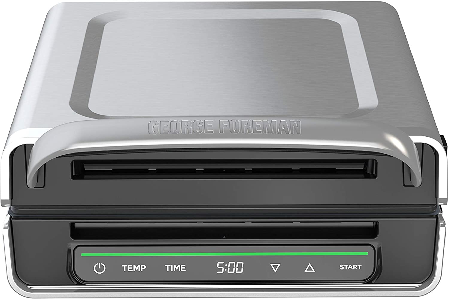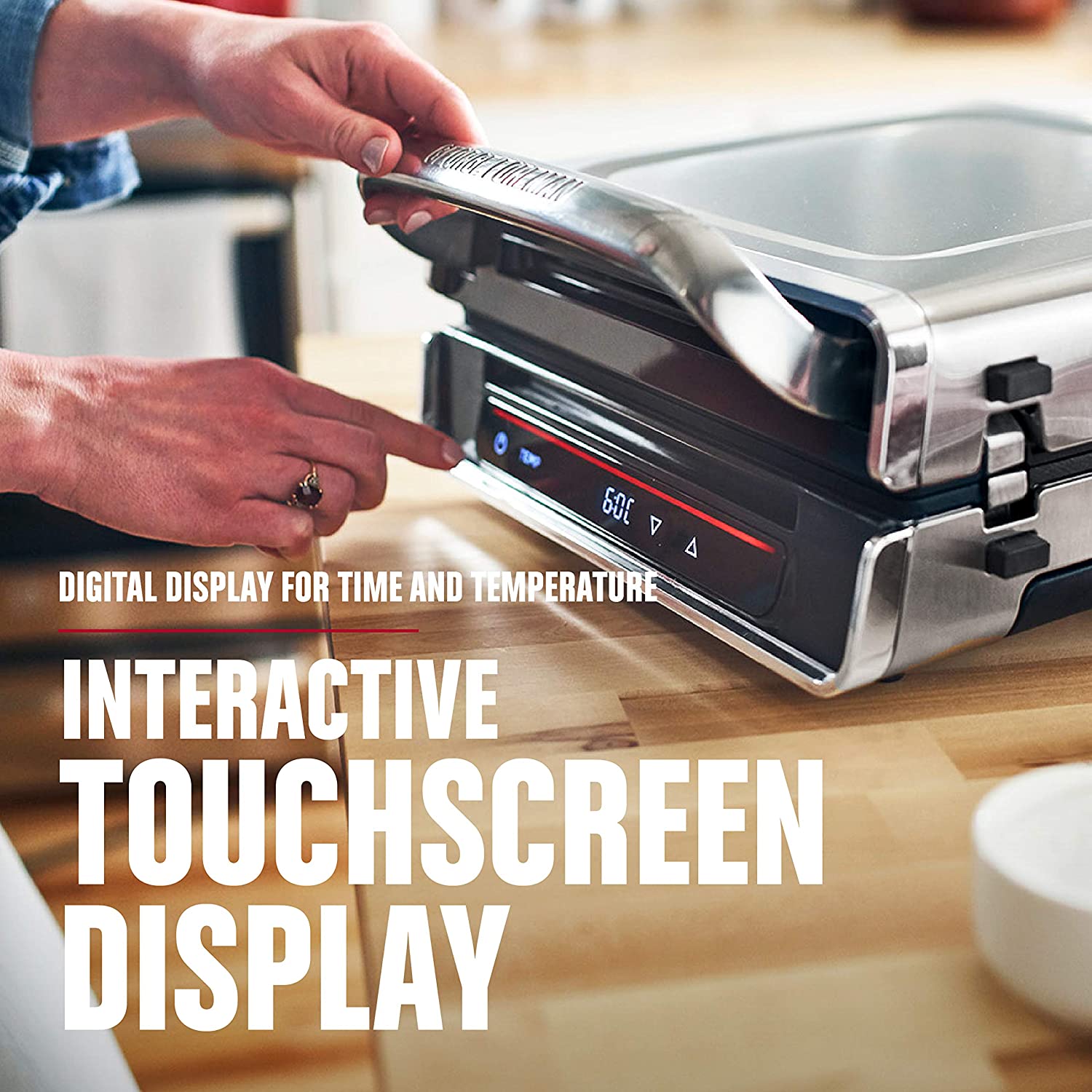 GEORGE FOREMAN® Grills presents: All sizzle without the smoke! The Smokeless - Digital Smart Select Grill makes indoor grilling fast, delicious, and smokeless! The touch-sensitive, digital control panel guides you through the process of selecting the precise time and temperature for every grilling task. With contact grilling, you can cook your favorite meals up to 3X faster**. Give burgers a try—they’re ready in just six minutes***!
