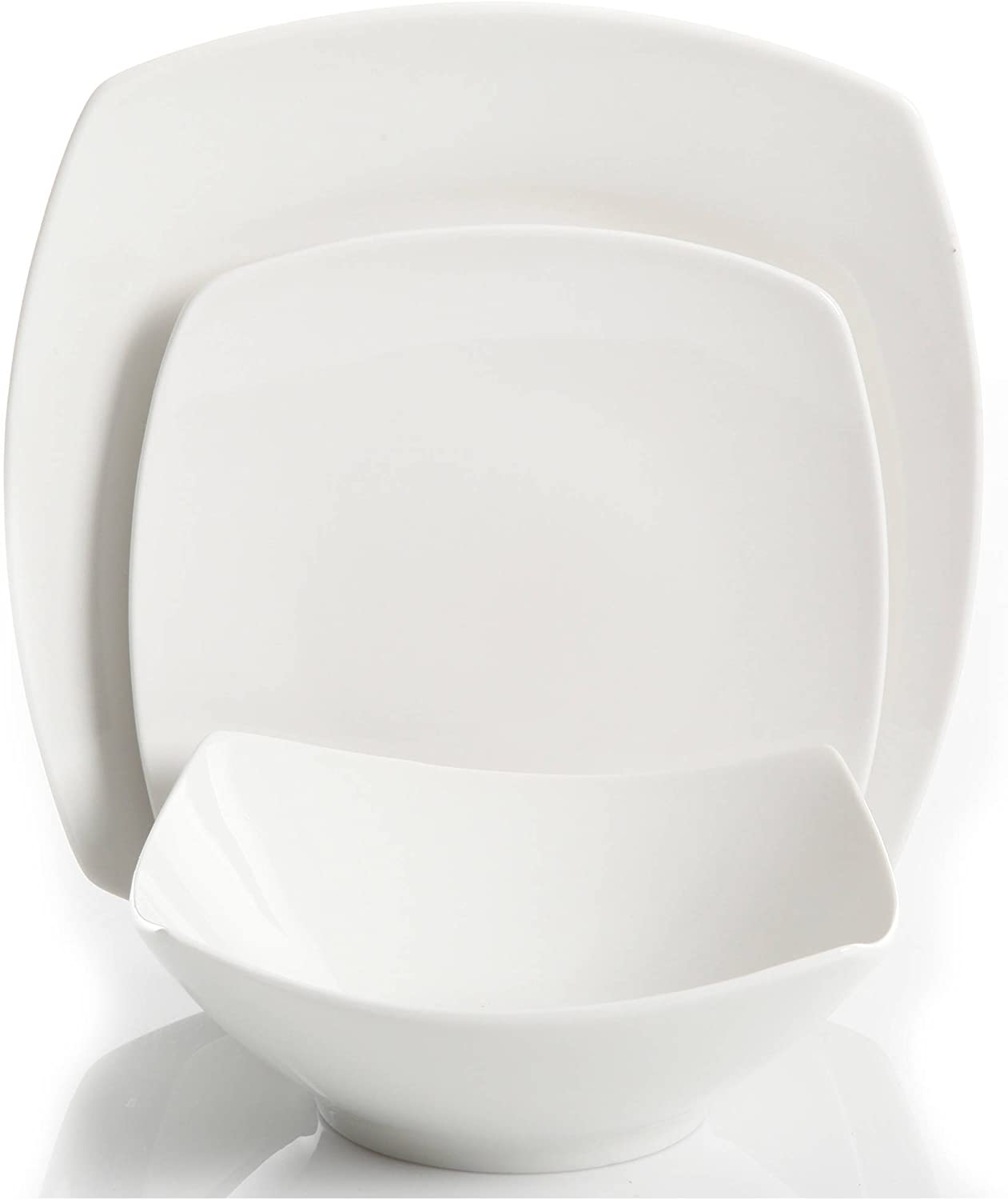 We aim to show you accurate product information. Manufacturers, suppliers and others provide what you see here, and we have not verified it. See our disclaimer Features Bring a classic look to your home with the Gibson Home Everyday Square 12-piece dinnerware set. The set's classic whiteware look means it easy to match with a wide variety of table settings and a modern square silhouette adds style to every piece. No matter if you are enjoying a family dinner or entertaining guests this white dinnerware set is a go-to choice for value and durability. Every home needs a versatile set like the Everyday Square. Each item is crafted from durable, lightweight fine ceramic that is both dishwasher and microwave safe. The Gibson Home Everyday Square 12-piece dinnerware set comes with a complete service for four that includes a dinner plate, dessert plate and a bowl. Bring the style and value of Gibson to your home today! Gibson Home Everyday Square 12-Piece Dinnerware Set: 4 - 10.75" Dinner Plates 4 - 8.5" Dessert Plates 4 - 8" Bowls A versatile dinnerware set perfect for all occasions The Gibson Home Everyday 12-Piece dinnerware set has complete service for four (dinner plate, dessert plate, bowl) Modern square shape adds a sense of style to the table Quality white dinnerware that can easily match with a variety of table settings and colors Dishwasher Safe Microwave Safe Offers the best in both durability and function