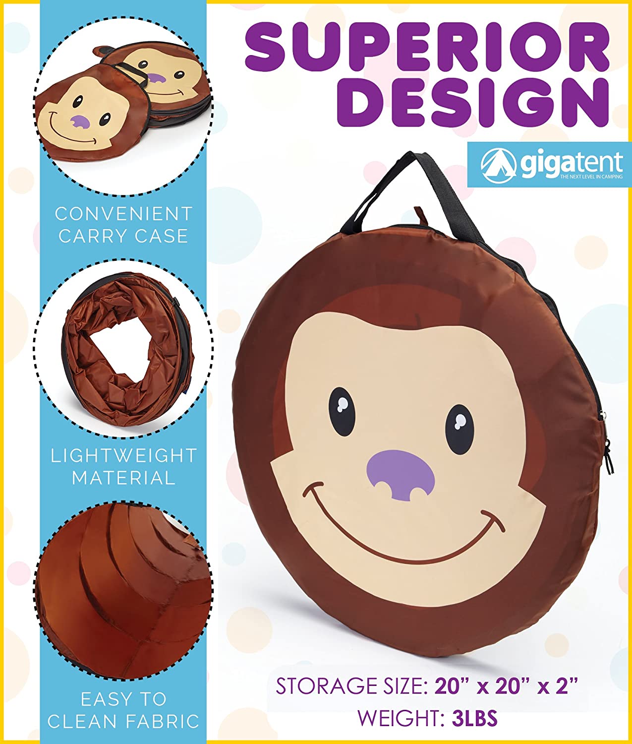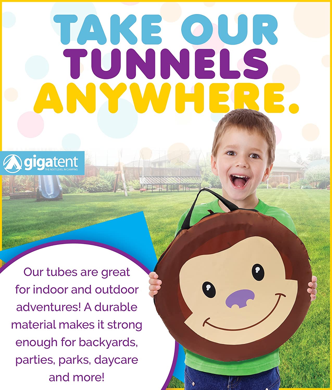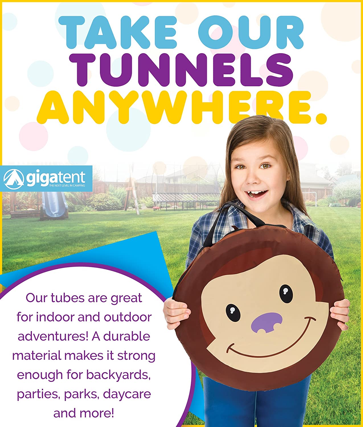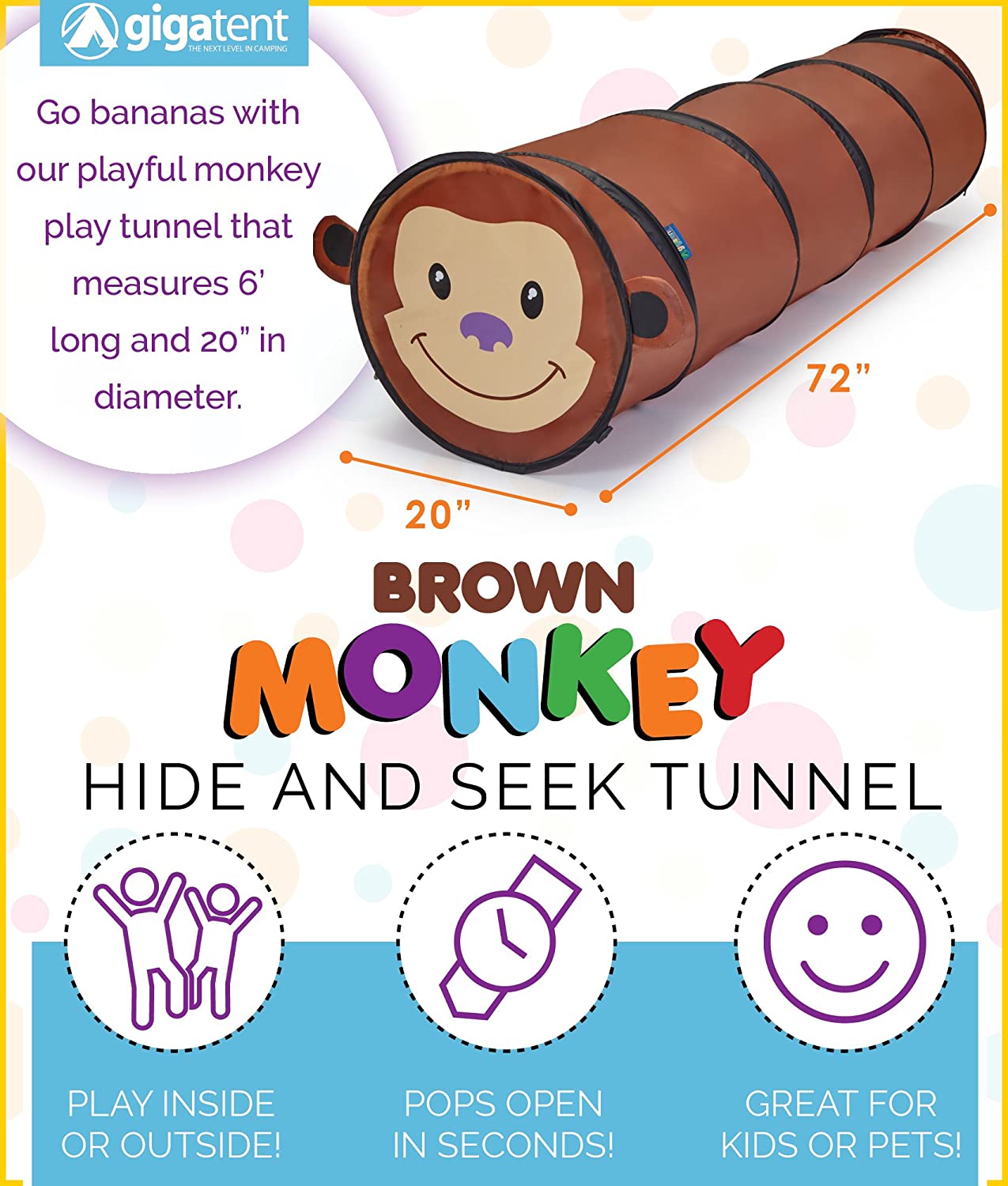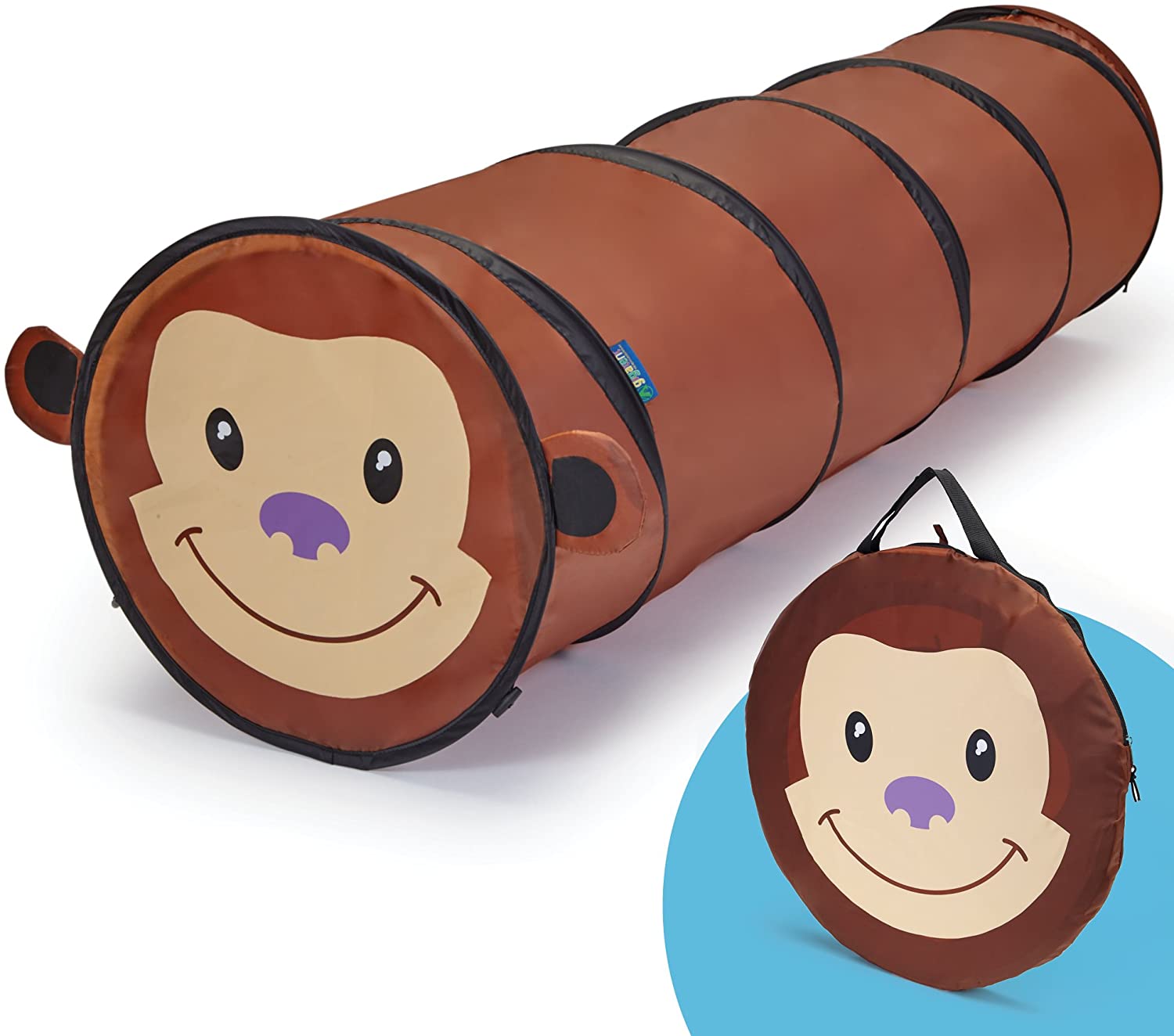 - MONKEY PLAY TUNNEL: Go bananas with our 6 feet long play tunnel! A happy monkey face can be detached with toggles and loops making it the perfect hiding place for games and activities.