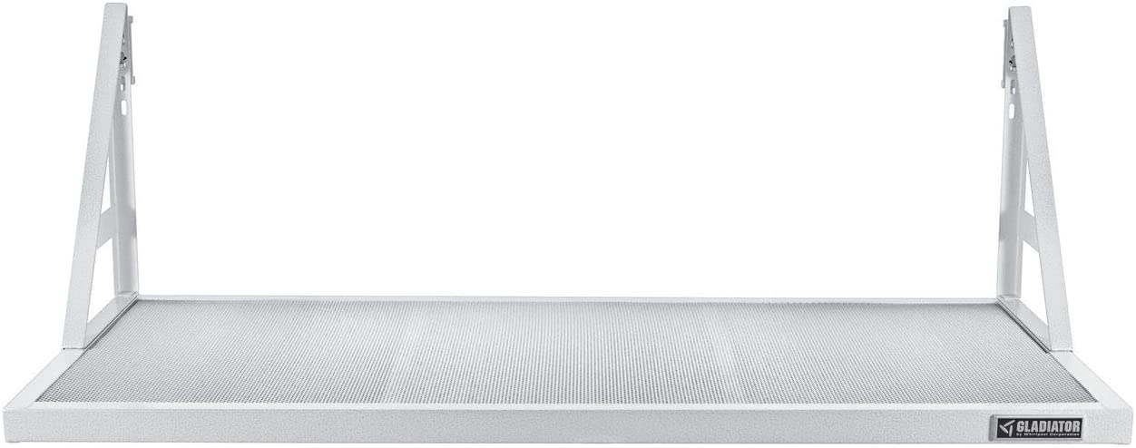 The Gladiator gear loft shelf provides an extra-deep surface for storing larger items, while the see-through mesh design allows you to inspect stored items even when the shelf is mounted High on the wall. The dual-mounting shelf brackets can be installed in an upward or downward position for increased storage flexibility.
