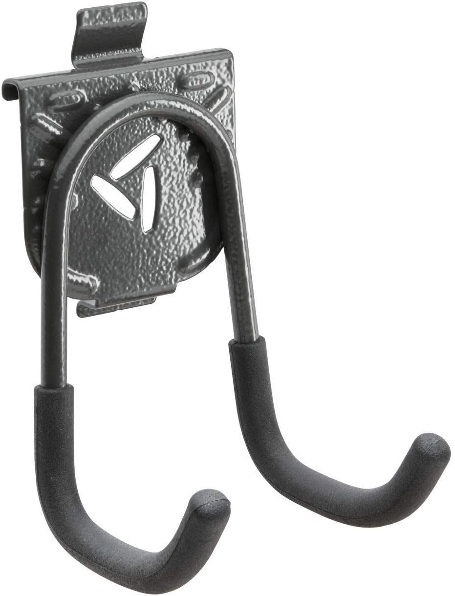 The 3.75-Inch wide x 5.75-Inch high x 4.5-Inch deep welded steel Utility Hook holds heavy items and has a weight capacity rating of 50-Pounds per hook, based on lab test of 200-Pounds per hook. It is great for wheels, sledgehammers and lawn chairs. It can be easily hung and repositioned on Gladiator Wall Systems when storage needs change without the use of tools.