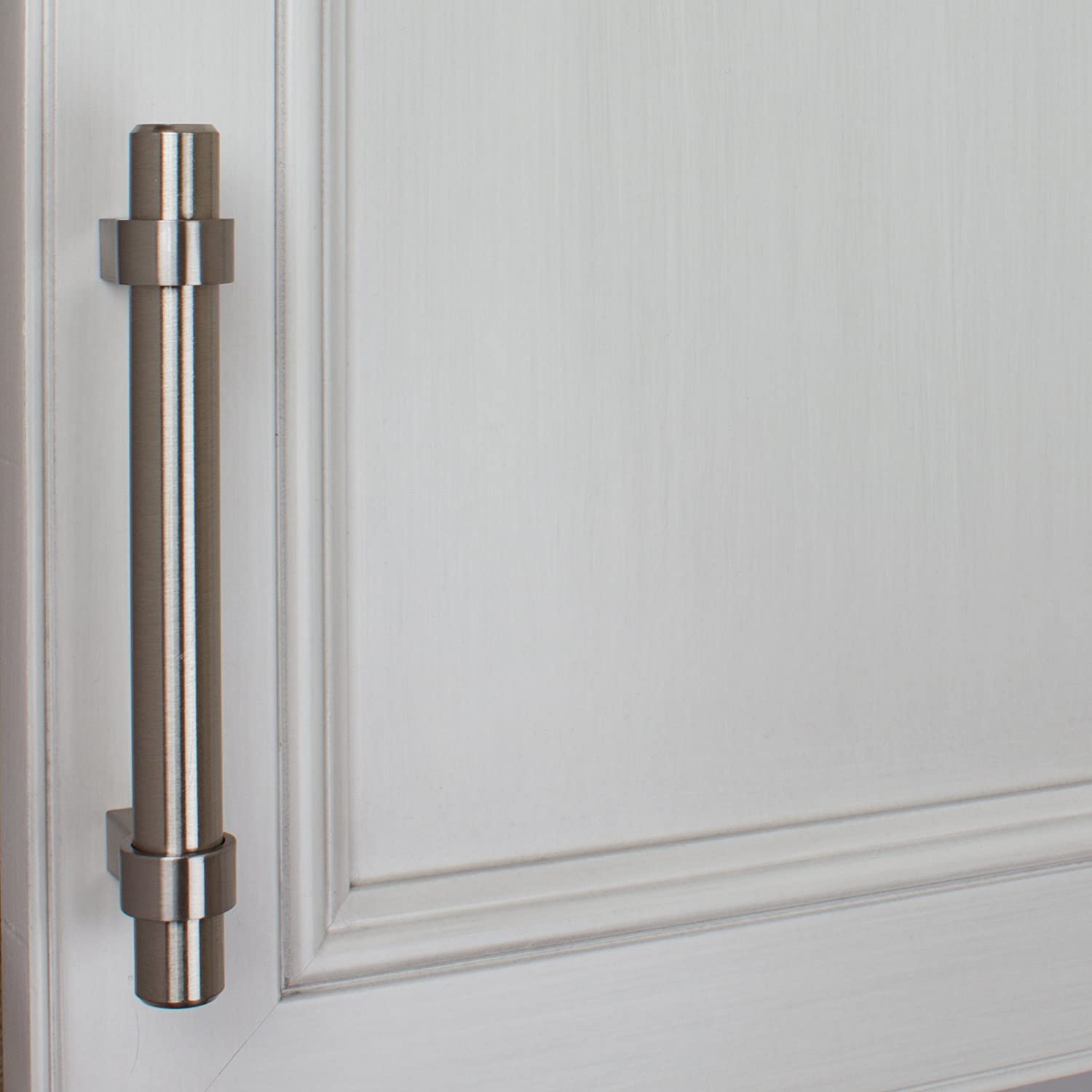 Instantly upgrade the decor in your kitchen, bathroom or bedroom with these extra thick euro cabinet bar pulls by GlideRite Hardware. Specifications: length 5-1/4 inch x projection 1-1/4 inch x diameter 9/16 inch x screw spacing 3-3/4 inch x weight 6.6 oz. Each cabinet pull is individually bagged to prevent damage to the finish and standard size #8-32 x 1” screws are included.