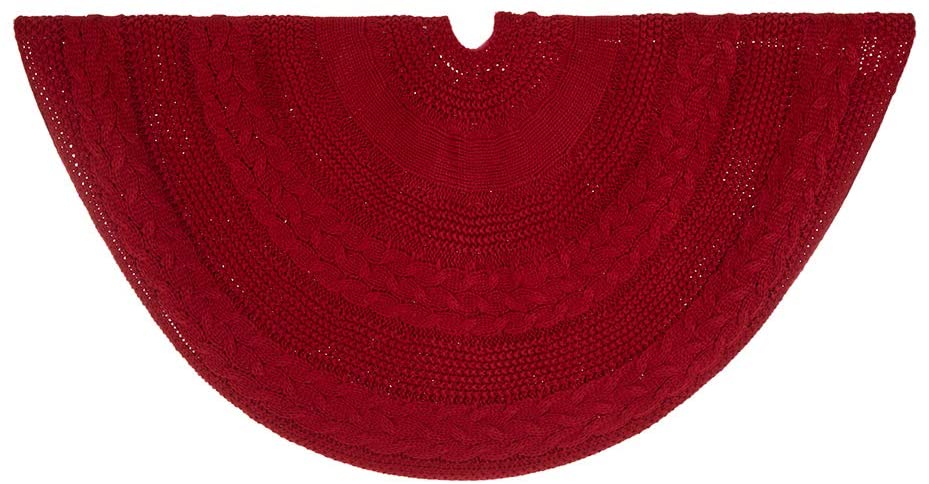 Glitzhome Knited Acrylic Christmas Tree Skirt-Red for Xmas Decoration 52"