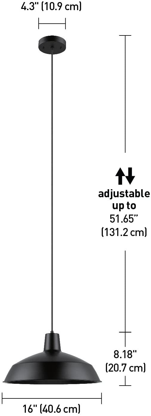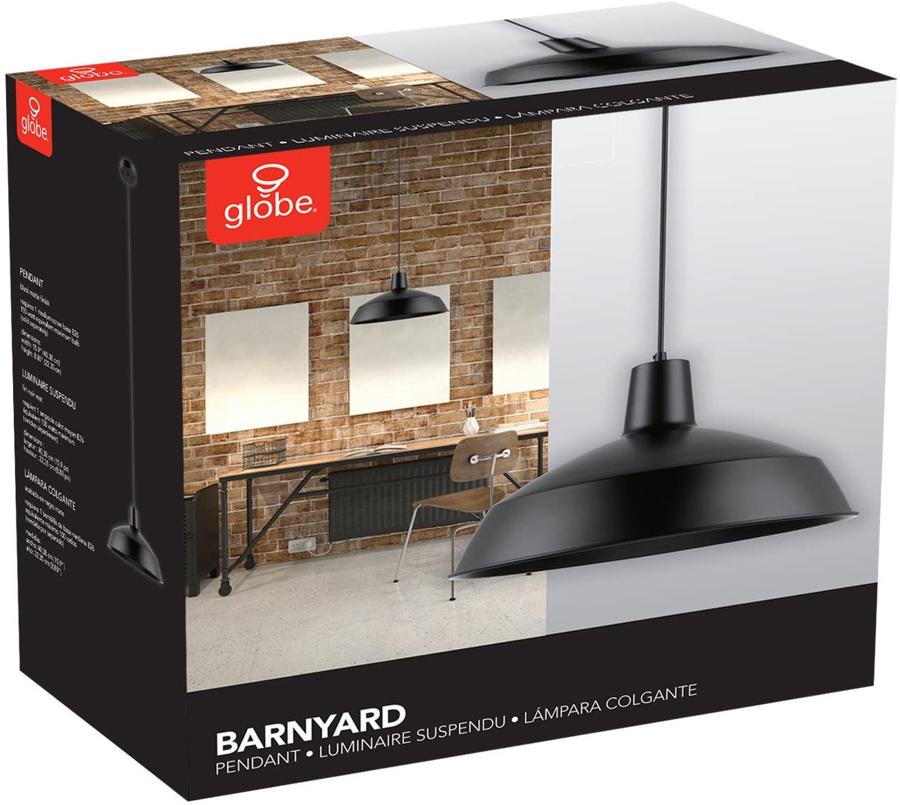 With its matte black finish and modern profile, the Globe Electric's Barnyard 1-Light 16" Industrial Warehouse Pendant emits a cool, practical presence, like those found in large warehouses, artists' lofts, or retro-style barber shops. Made of durable metal, the transitional-style shade offers a clean, casual look and general all-over room lighting. Use it anywhere from over the kitchen table or bar to above a sitting area in the living room or in a workshop, game room, or studio. The light comes with a 5-foot cord for easy hanging installation. Requires one medium base 100W bulb (sold separately). Check out Globe Electric's selection of vintage inspired bulbs for a truly unique look.