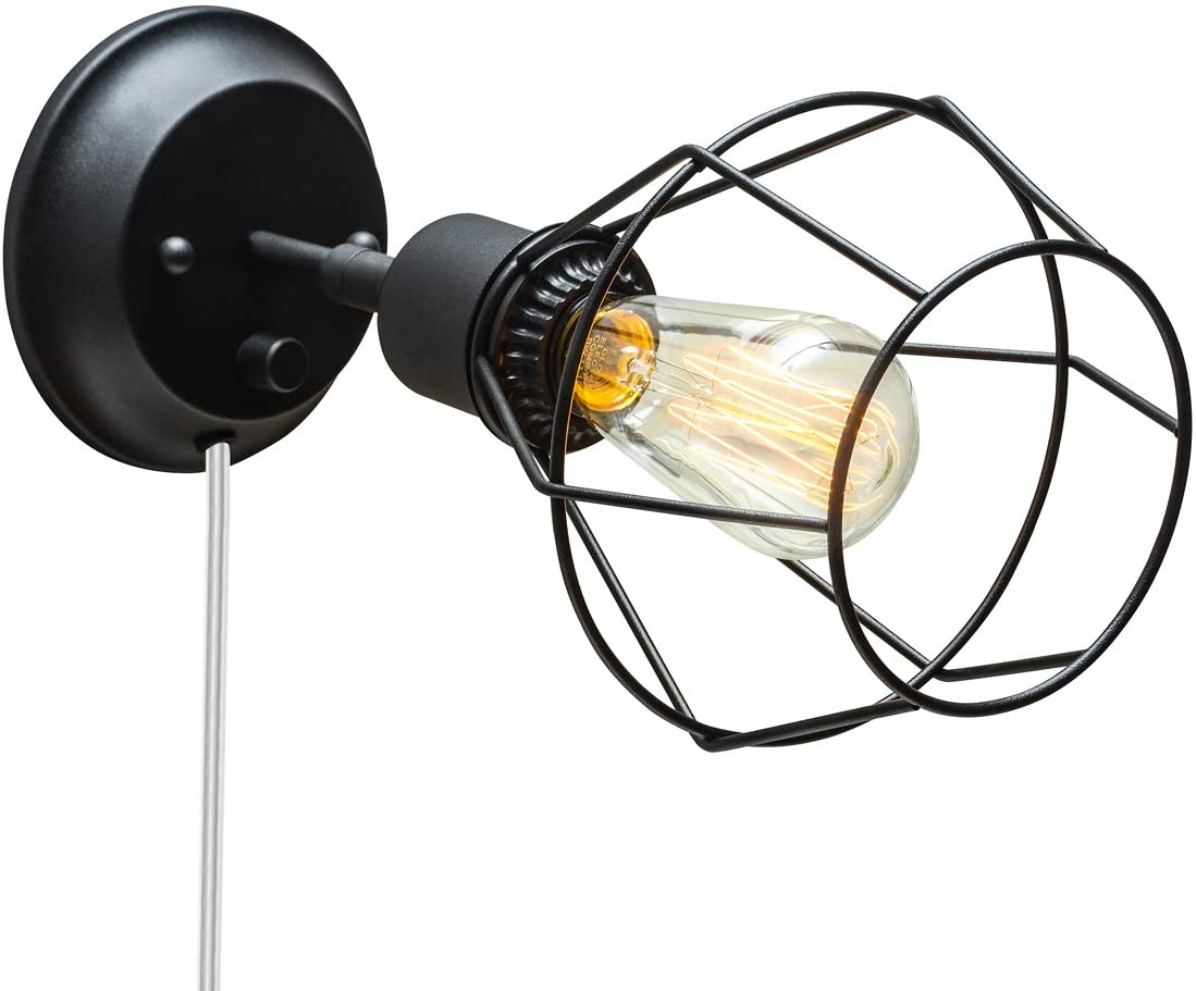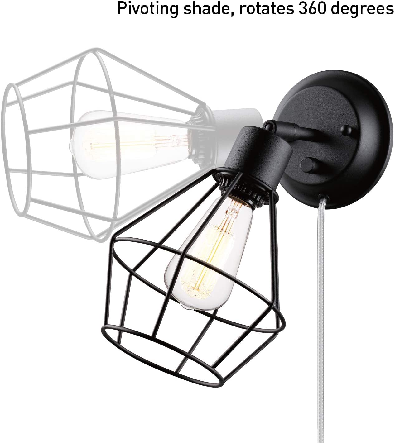 Fashioned after vintage inspired lighting Globe Electric’s edgy 2-in-1 Verdun 1-Light Plug-In or Hardwire Industrial Cage Wall Sconce adds a rustic industrial feel to any space. This adjustable wall sconce can pointed up or down, allowing you to customize lighting ambiance and mood. Ideal for use in kitchens, restaurants, bars, and dining rooms - the exposed bulb delivers the perfect unique look. Check out Globe Electric's vintage Edison light bulbs for designer antique bulbs to give that extra warm touch. Includes all mounting hardware for quick and easy installation and requires one 60W medium base bulb (sold separately).