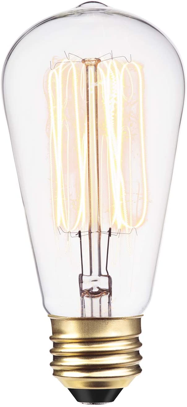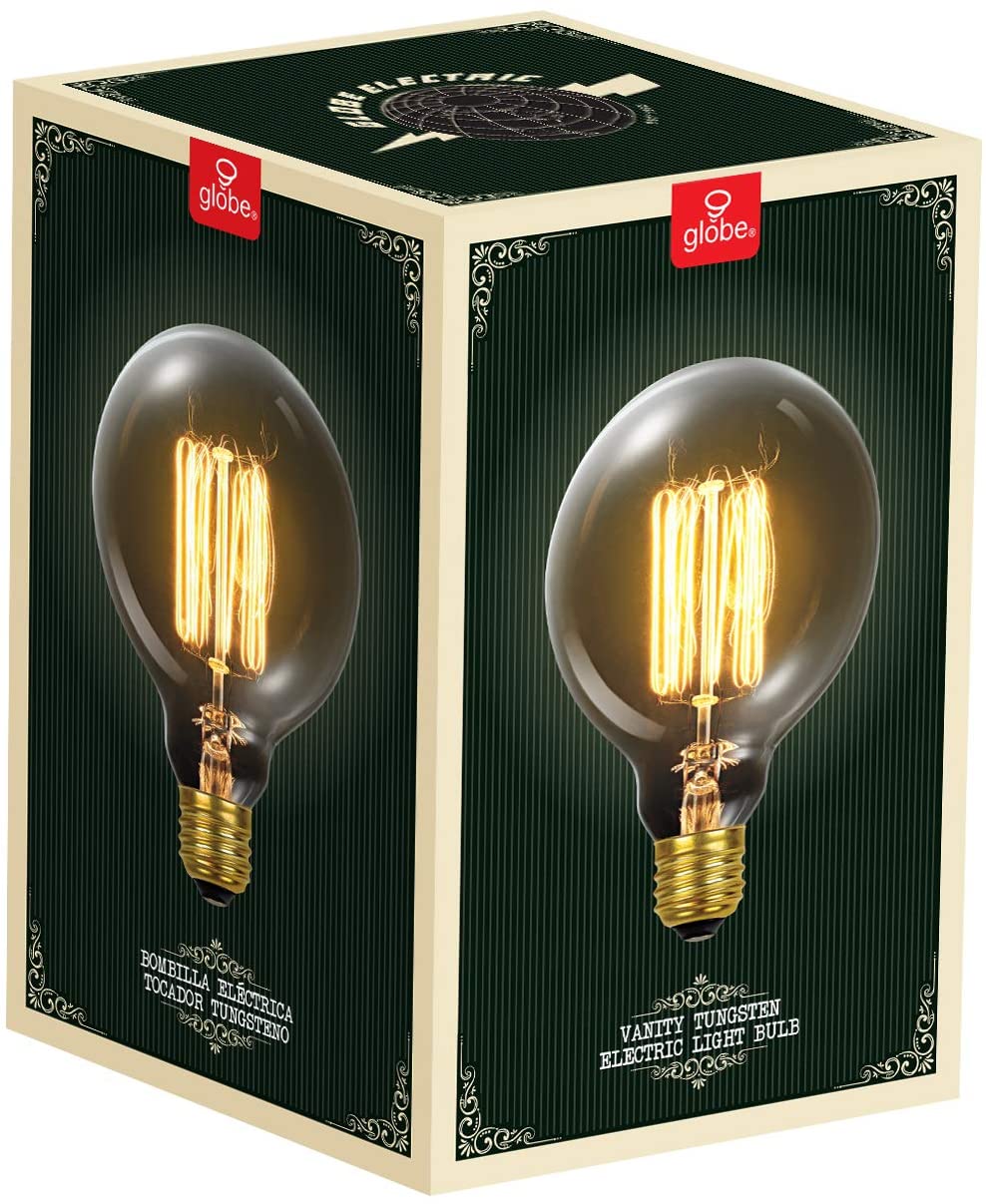 Globe Electric's vintage designer 60W Vintage Edison G30 Tungsten Incandescent Filament Vanity Light Bulb is a perfect way to add style and pizzazz to your home. The exposed tungsten filament is used to reproduce the single hairpin loop of a vintage Edison design and is ideal for architectural restoration projects, conceptual space or to bring a vintage touch to any room. Since the squirrel cage filament emits a soft warm glow, these bulbs work great as an accent or mood light. Pair it with a clear shade or exposed socket fixture to enjoy its ambient glow. The round shape of the G30 bulb works beautifully to create a vintage style work of art out of any exposed socket fixture. This bulb has a standard medium E26 base and is recommended for exposed socket fixtures.