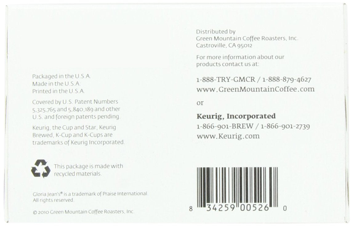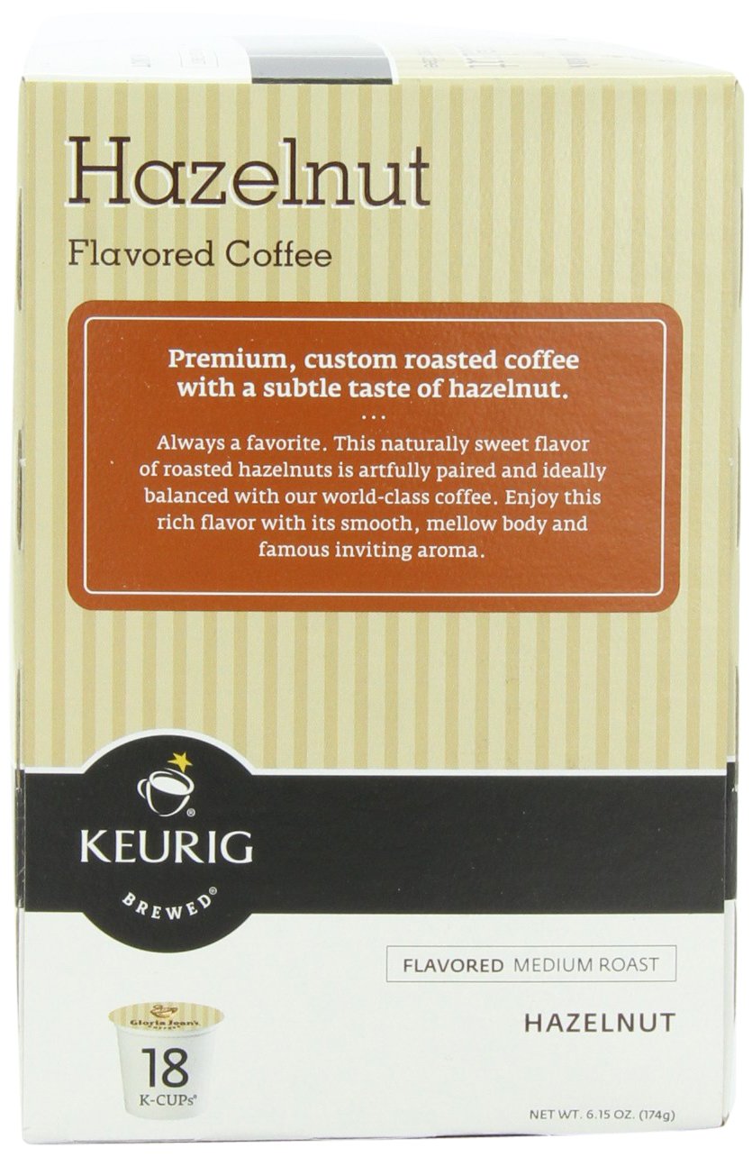 One of Gloria Jean's most popular nut flavors, hazelnut is a wonderful coffee that is perfect at any time of day. The Keurig single-cup brewing system uses a special packaging for coffee, tea and hot cocoa called K-Cup portion packs or "K-Cups". Each K-Cup is an airtight, mini-brewer that locks out oxygen, light, moisture and humidity while locking in freshness and flavor. Simply insert the no mess K-Cup into the brewer and hit the brew button for a fresh-brewed, perfect cup of coffee or tea in under a minute. 18 servings.