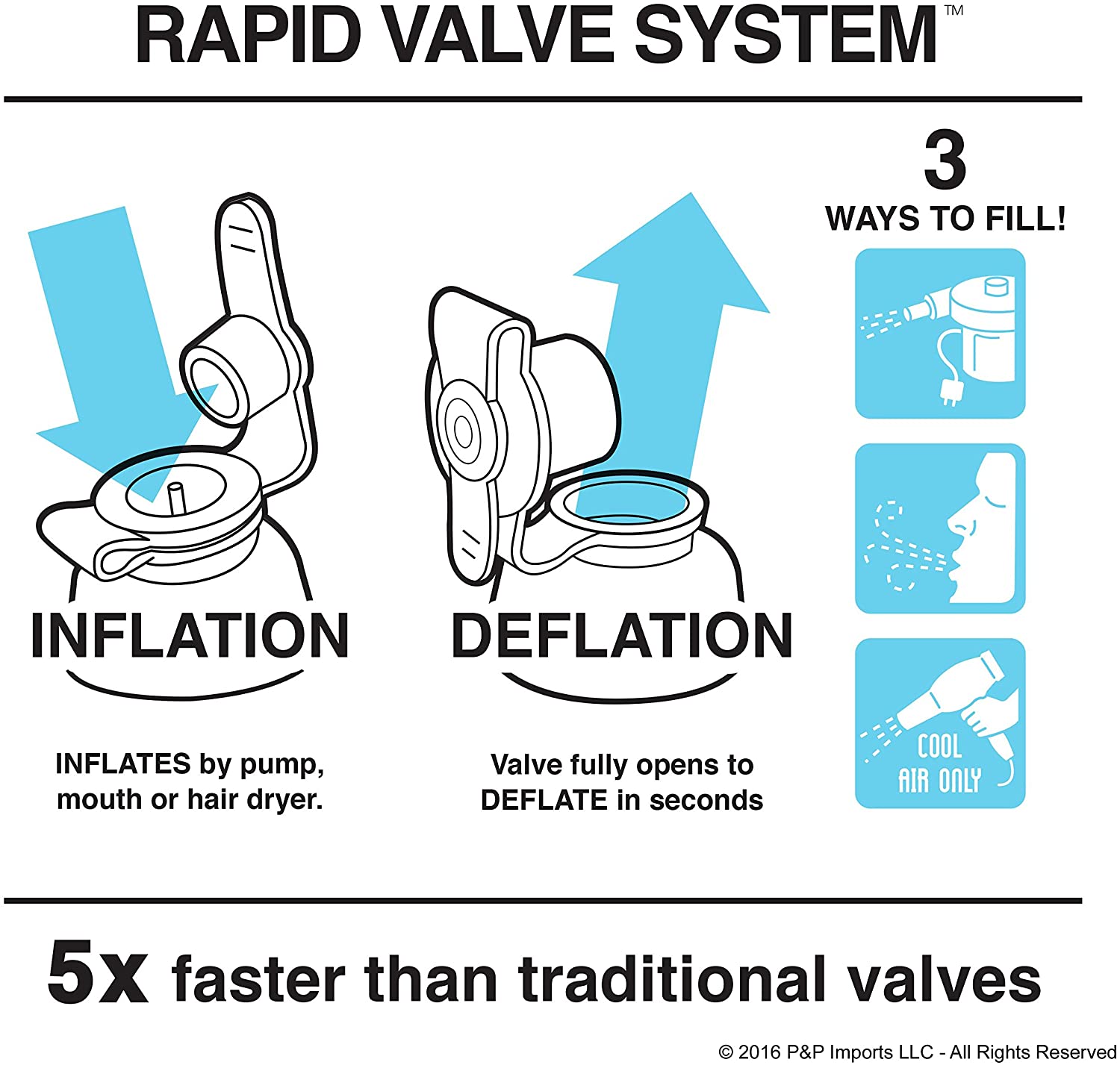 RAPID VALVE INFLATION: New rapid valve allows 10x faster inflation and deflation compared to traditional valves (2 minutes vs 20 minutes)